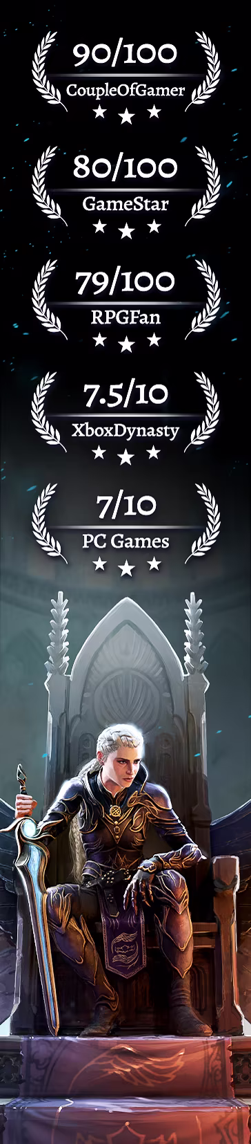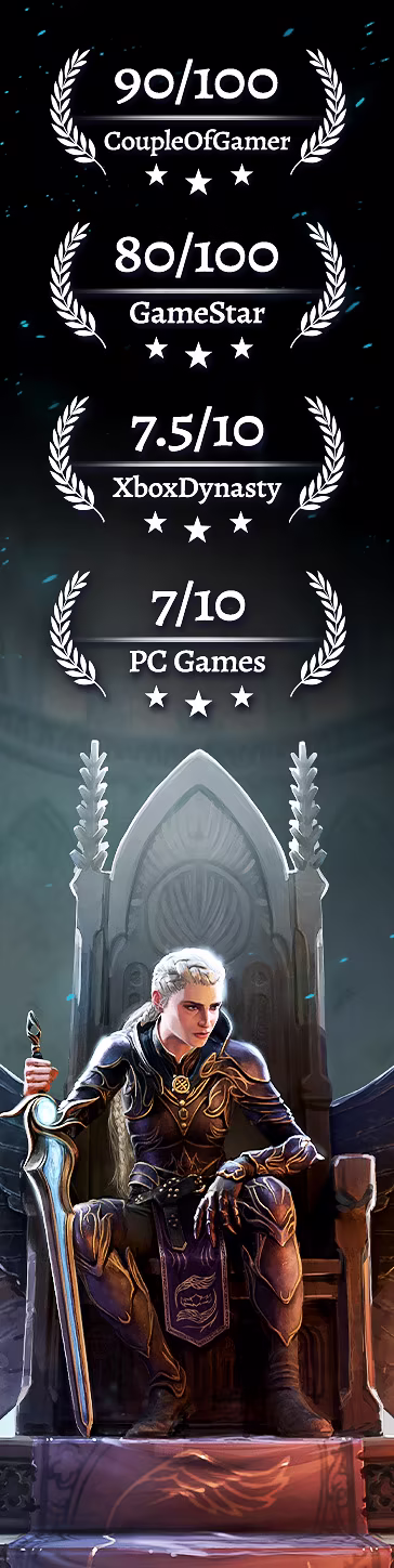 En Disciples: Domination continúas el viaje de Avyanna en una sombría historia de poder, guerra y sacrificio. Cada decisión marca su camino, determinando su destino y el futuro de Nevendaar.