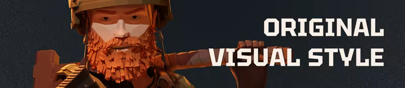 A down-to-earth war atmosphere: original stylistics and a grim color palette immerse you in an alternate Modern History setting. Beneath the low-poly aesthetic lies meticulous attention to detail: authentic, carefully recreated weapons and gear, vehicles, and camouflage. And no pink skins here—just gritty, worn-out uniforms!