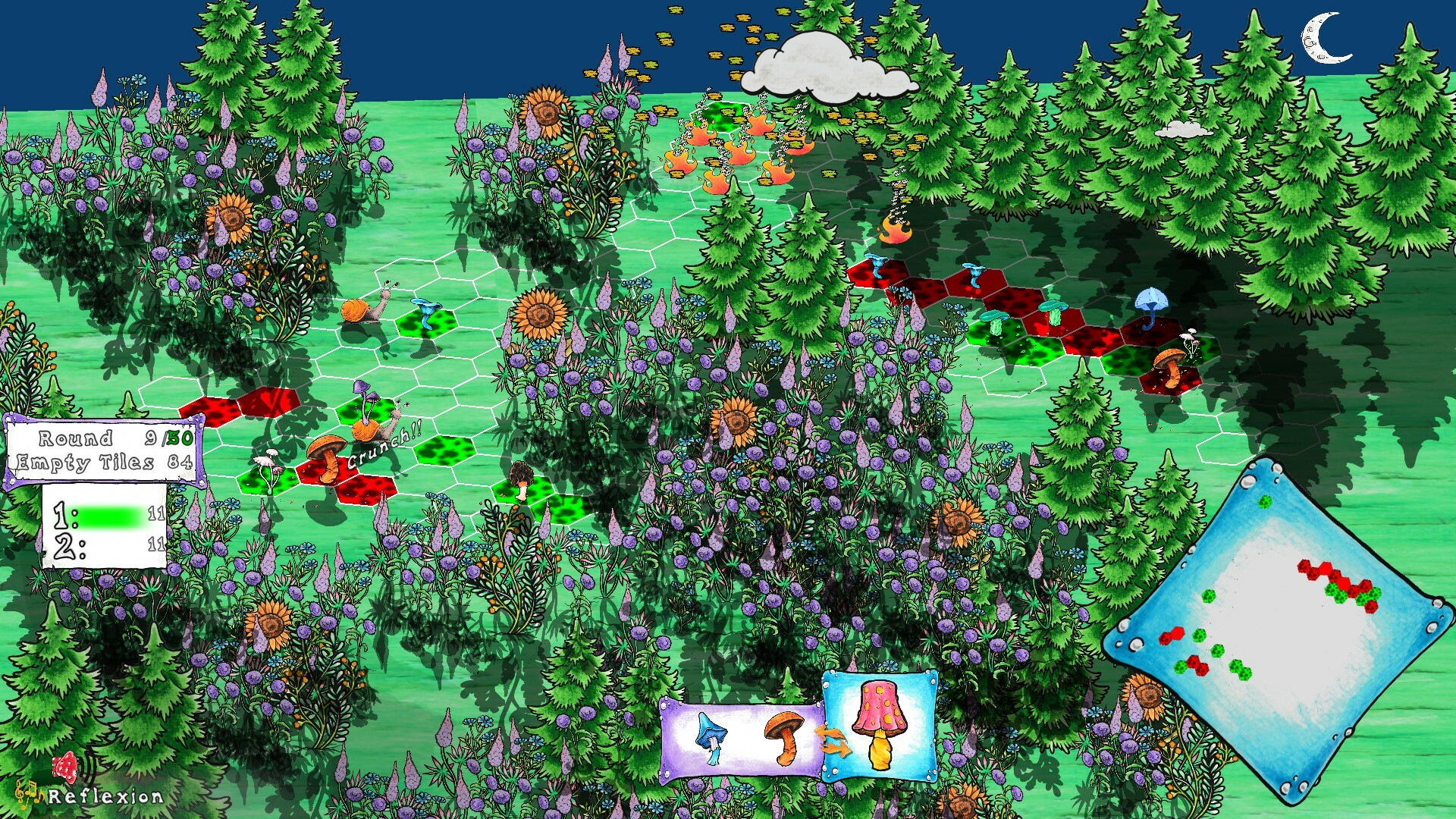 Embark on a relaxing journey with "Mushroom Moonrise," an enchanting turn-based strategy game. Dive into a world where the moon's glow nurtures a unique battle for territory, led by the most unlikely of champions! Mushrooms!