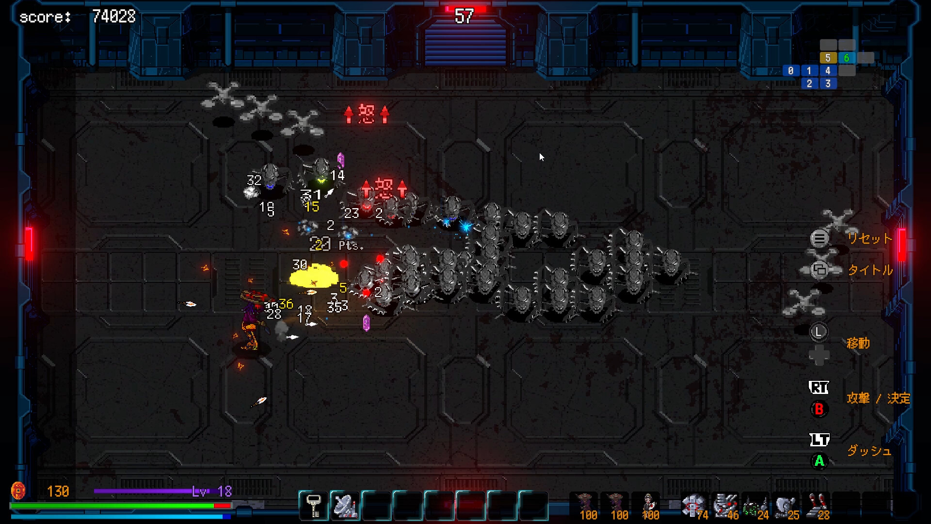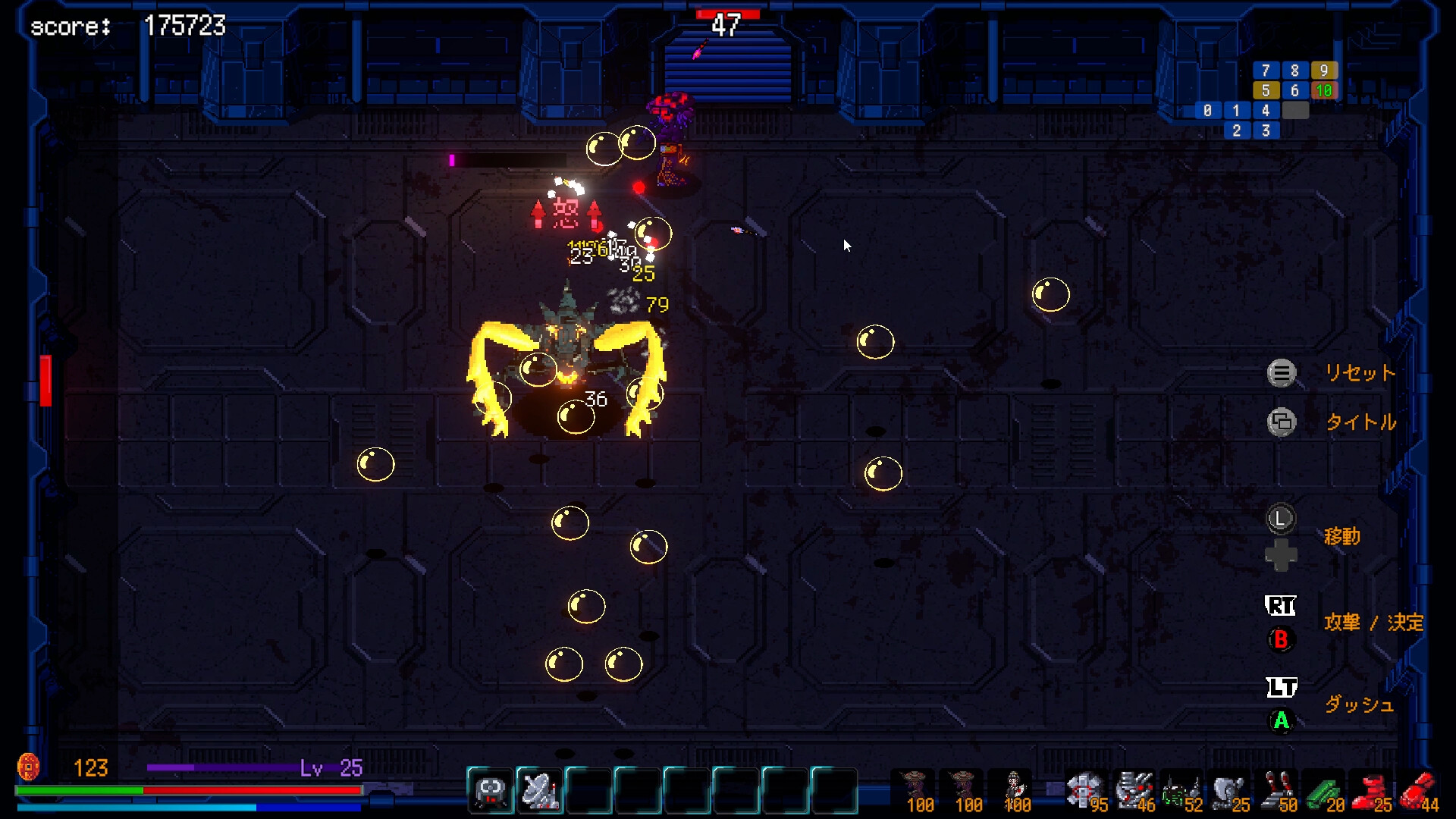 70種以上あるパワーアップアイテムを選んで集めて、プレイヤーを強化し、特性を伸ばしていきます。