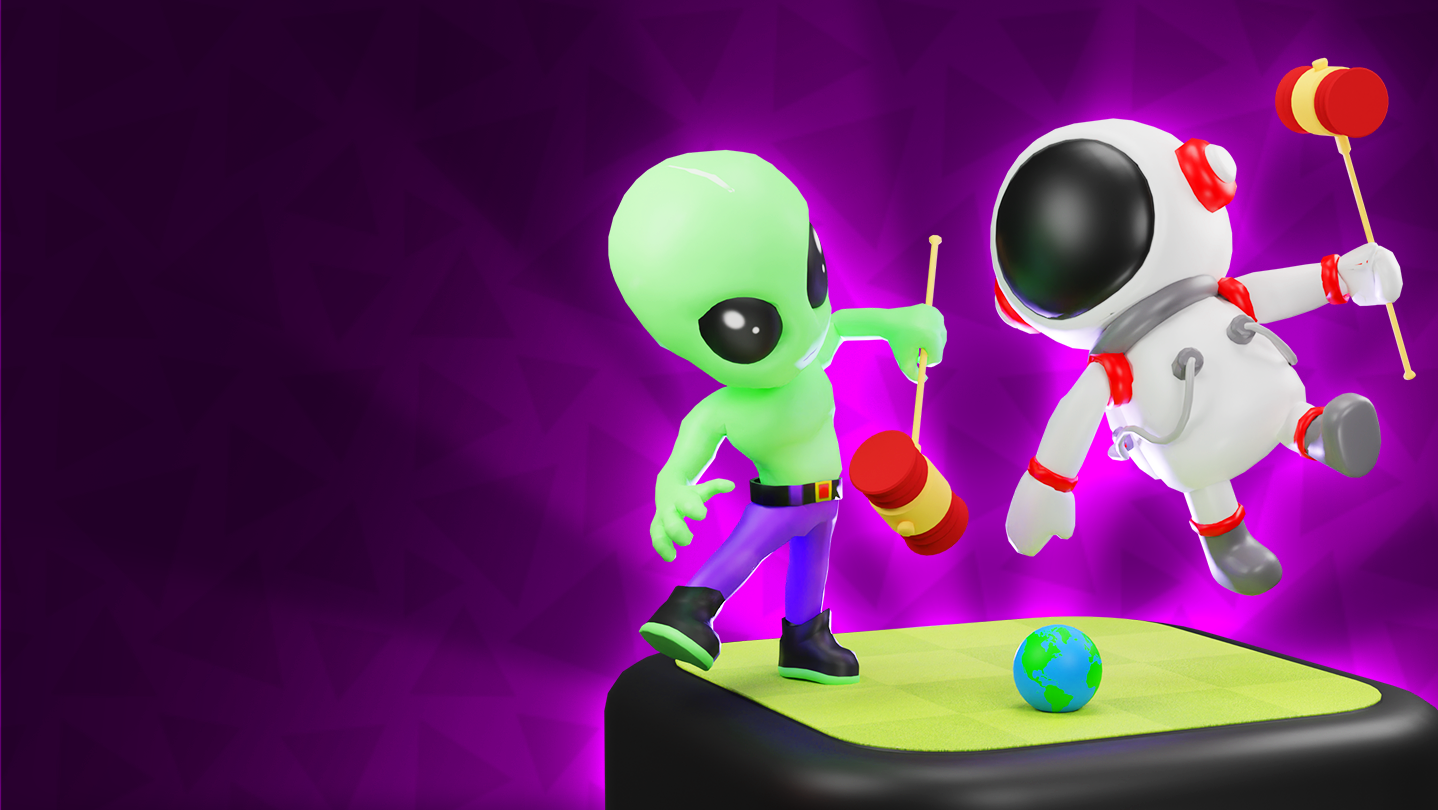 Dress up your golfer as a Astronaut or an Alien and try out a new toy hammer bat!