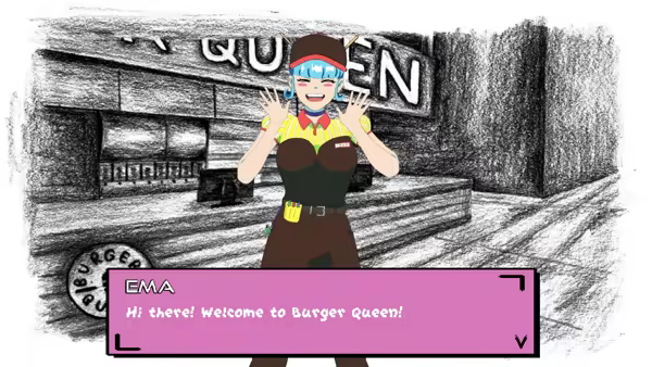 Rhythm Reunion features 5 distinct characters, all made in a wholly unique style! Everything from artstyle, personality...Even their font is different! Talk to each of them and find out their interesting backstories, and try to convince them to rejoin 'Summer Vacation' for one last gig!