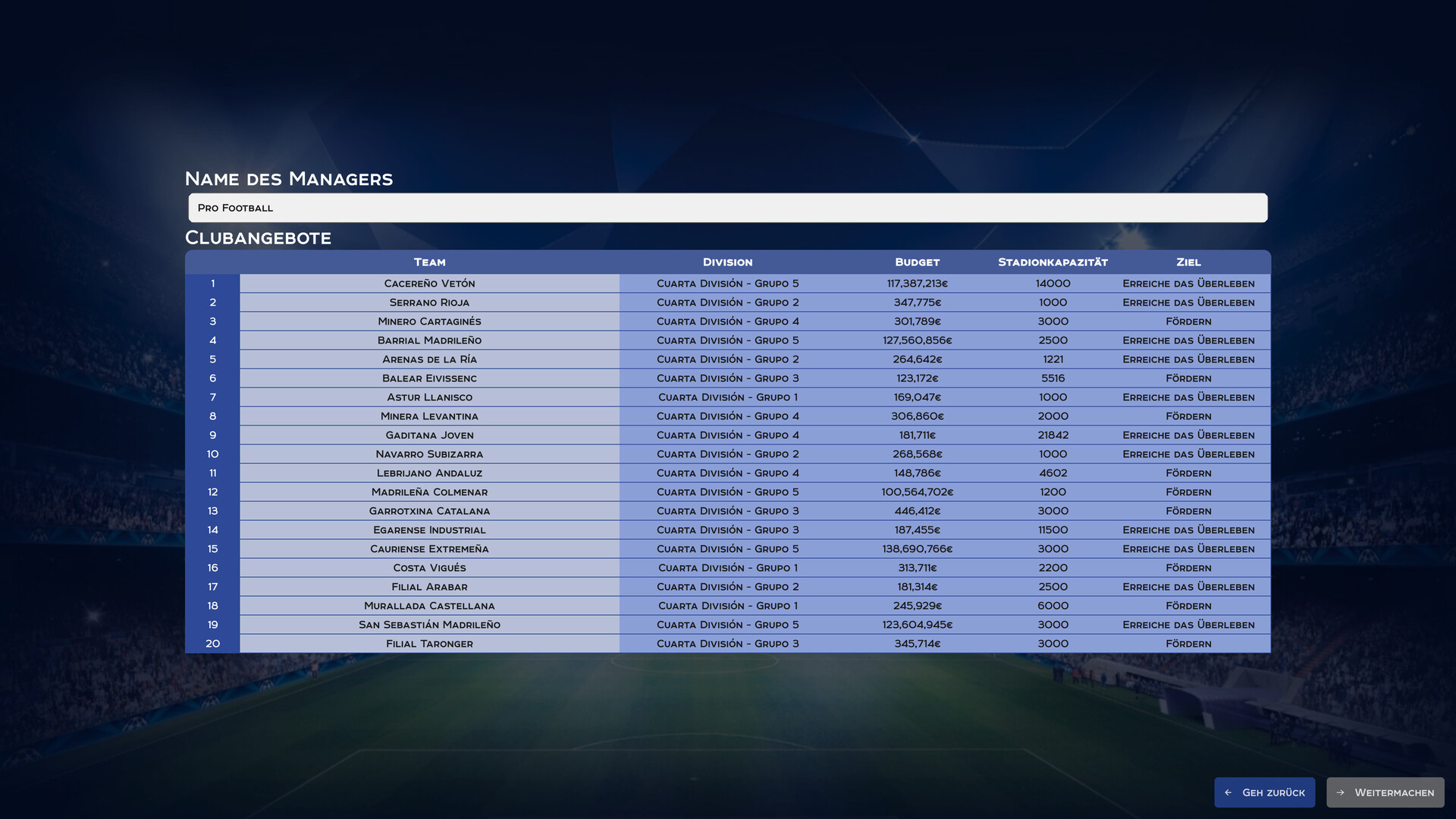 🎮 Tauche ein in Pro Football und führe dein Team an die Spitze der Fußballwelt.