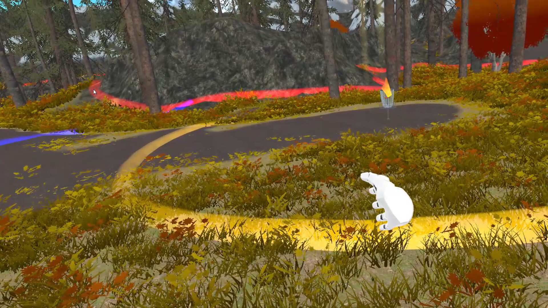 DISCIN aims to capture the essence of what makes disc golf fun- the intersection of power, creativity, and accuracy in achieving your goal. To allow players complete expression with their throws, our flight model is a physically accurate aerodynamic simulation. Release discs at different angles and speeds and you'll be rewarded with full spectrum of flight paths and distances. We have crafted our courses to promote challenging throws and creative lines of play, while creating an idyllic landscape.