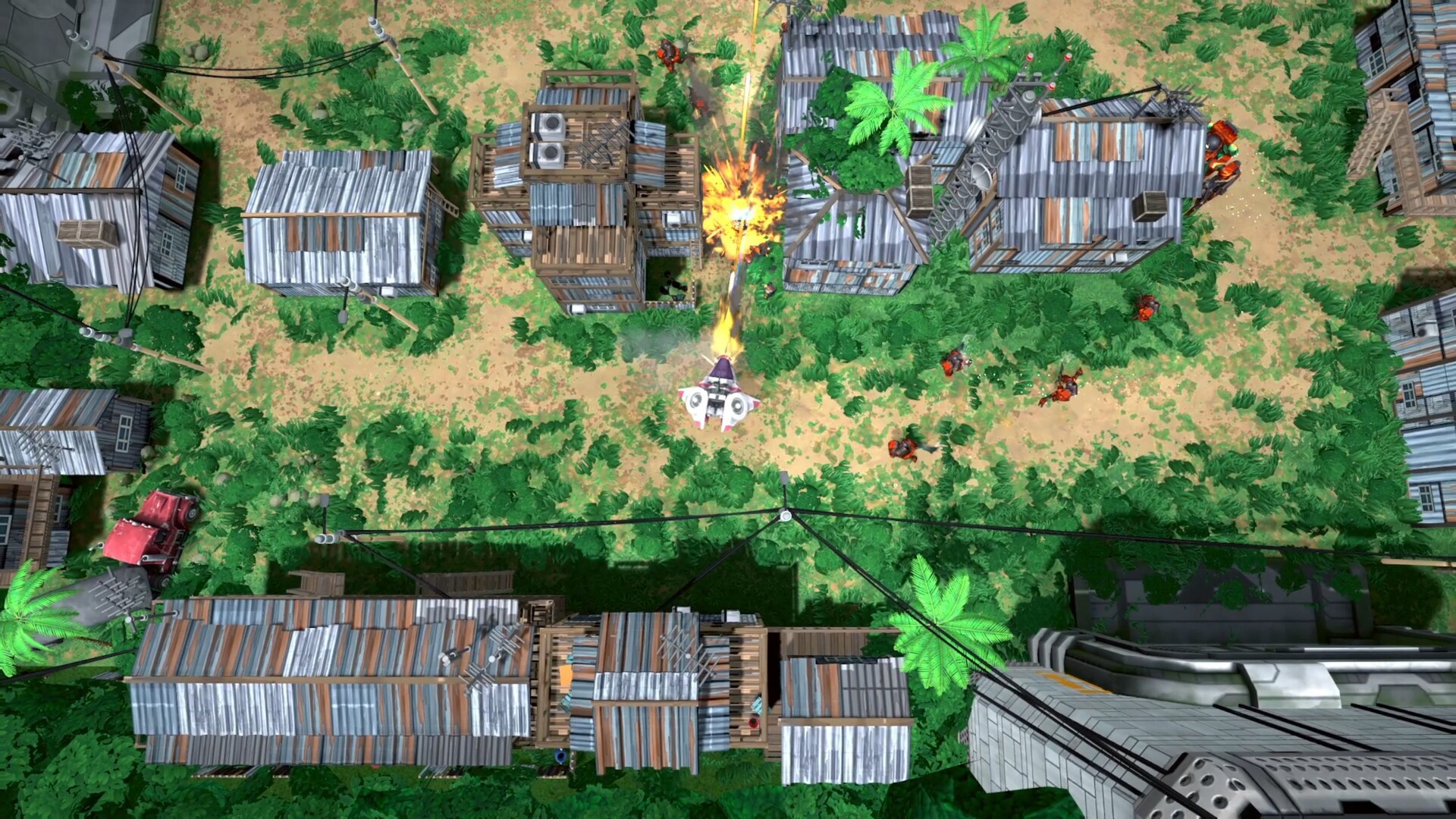• Fend off waves of mechs and large robots trying with your weapon arsenal.