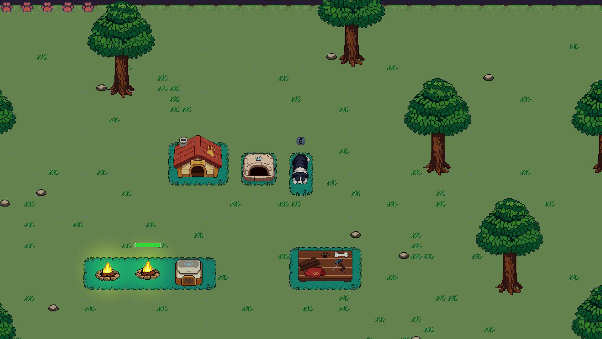 Set in a charming pixel-art environment, the game focuses on relaxed exploration mixed with light action. You’ll talk to characters, interact with objects like crafting tables and food bowls, manage a small inventory, and slowly grow stronger as you explore.
