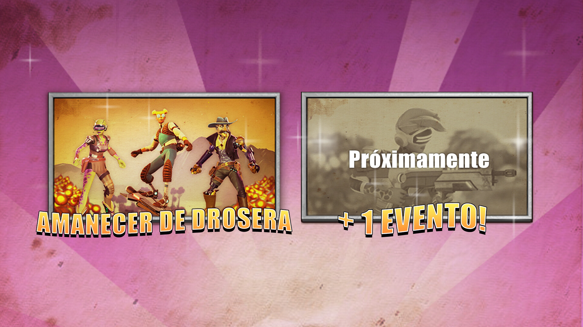 ¡DOS eventos especiales con mucho contenido nuevo! El primer evento, "AMANECER DE DROSERA", incluirá muchos artículos nuevos, como aerodeslizadores, armas y personajes. ¡Pero todavía no podemos revelar los detalles del segundo evento!