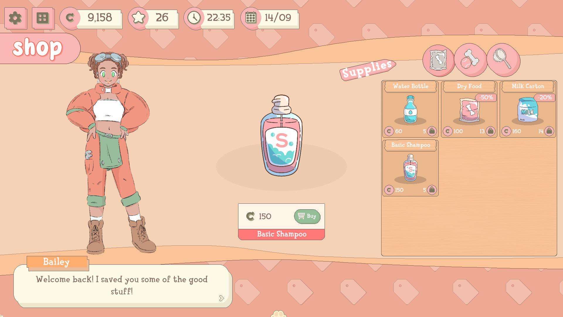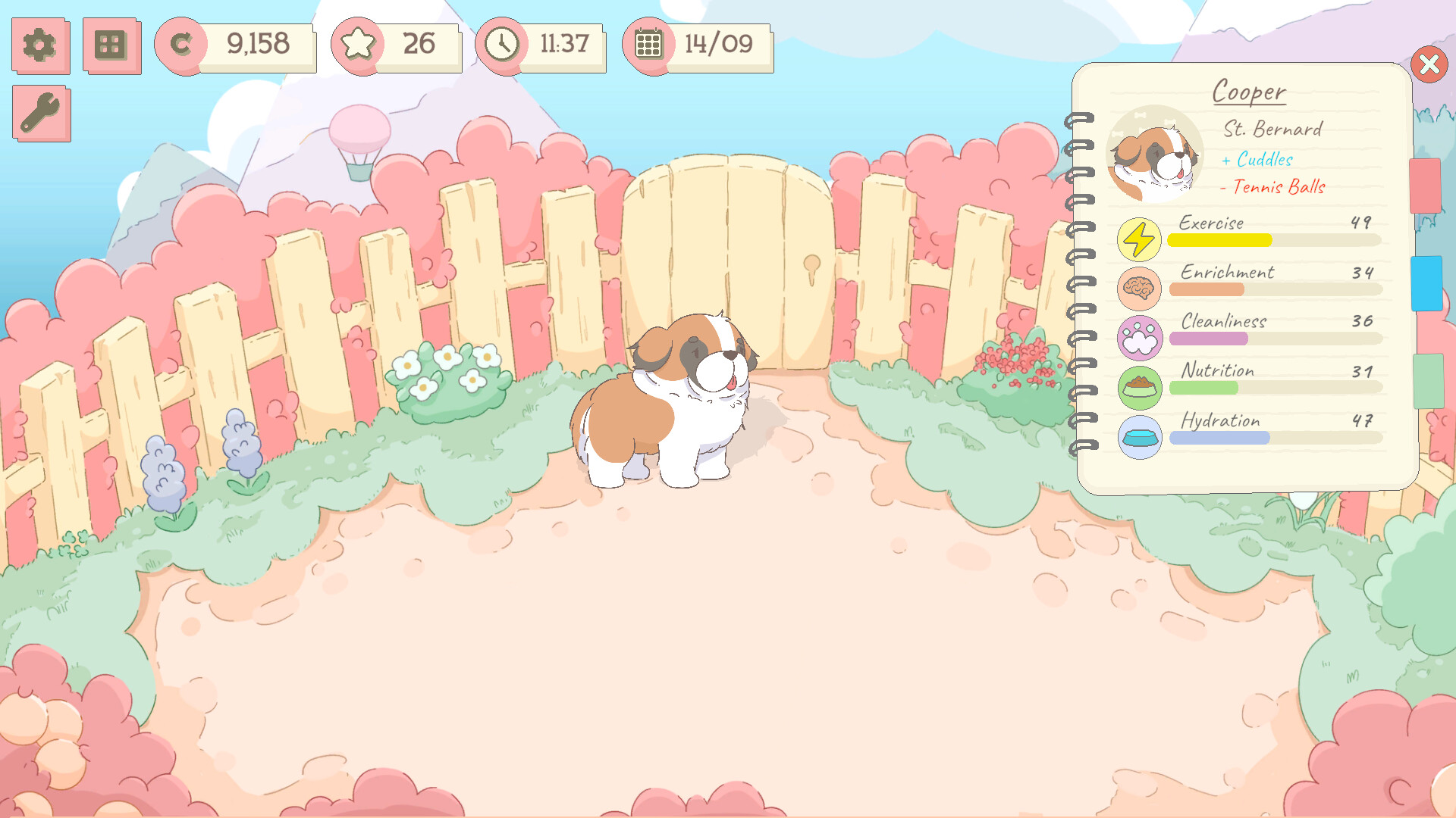 Every day, new dogs arrive with their unique natures and needs. Your job is to welcome them warmly — shop for the perfect food and treats, pamper them with grooming, and take them on walks along scenic routes tailored just for them.