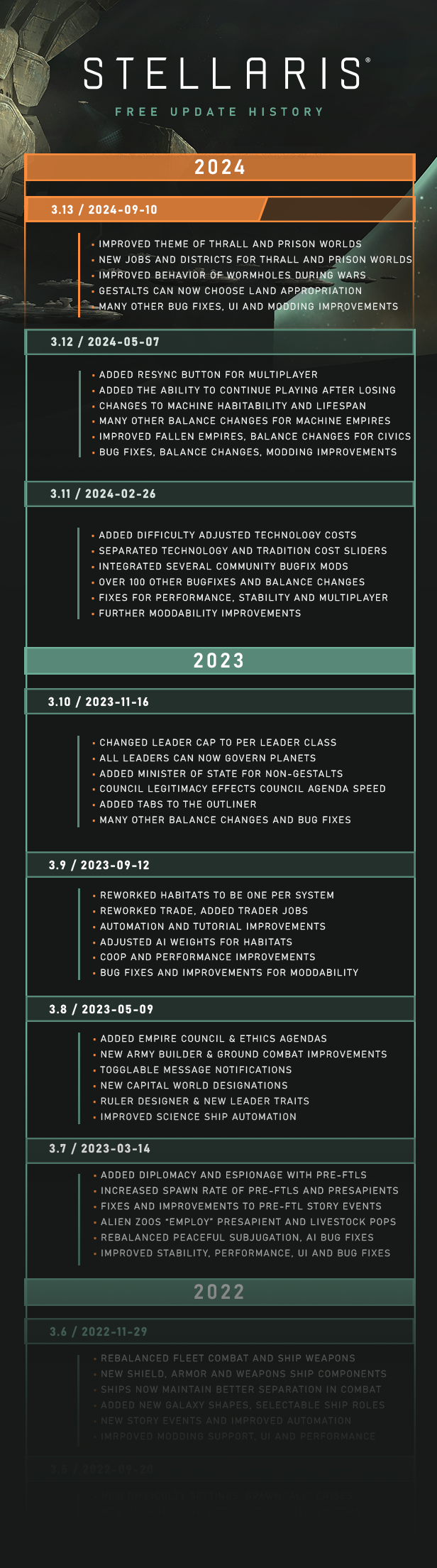 Like all our Grand Strategy games, the adventure evolves with time. Because free updates are a part of any active Paradox game, you can continue to grow and expand your empire with new technologies and capabilities. What will you find beyond the stars? Only you can answer that.