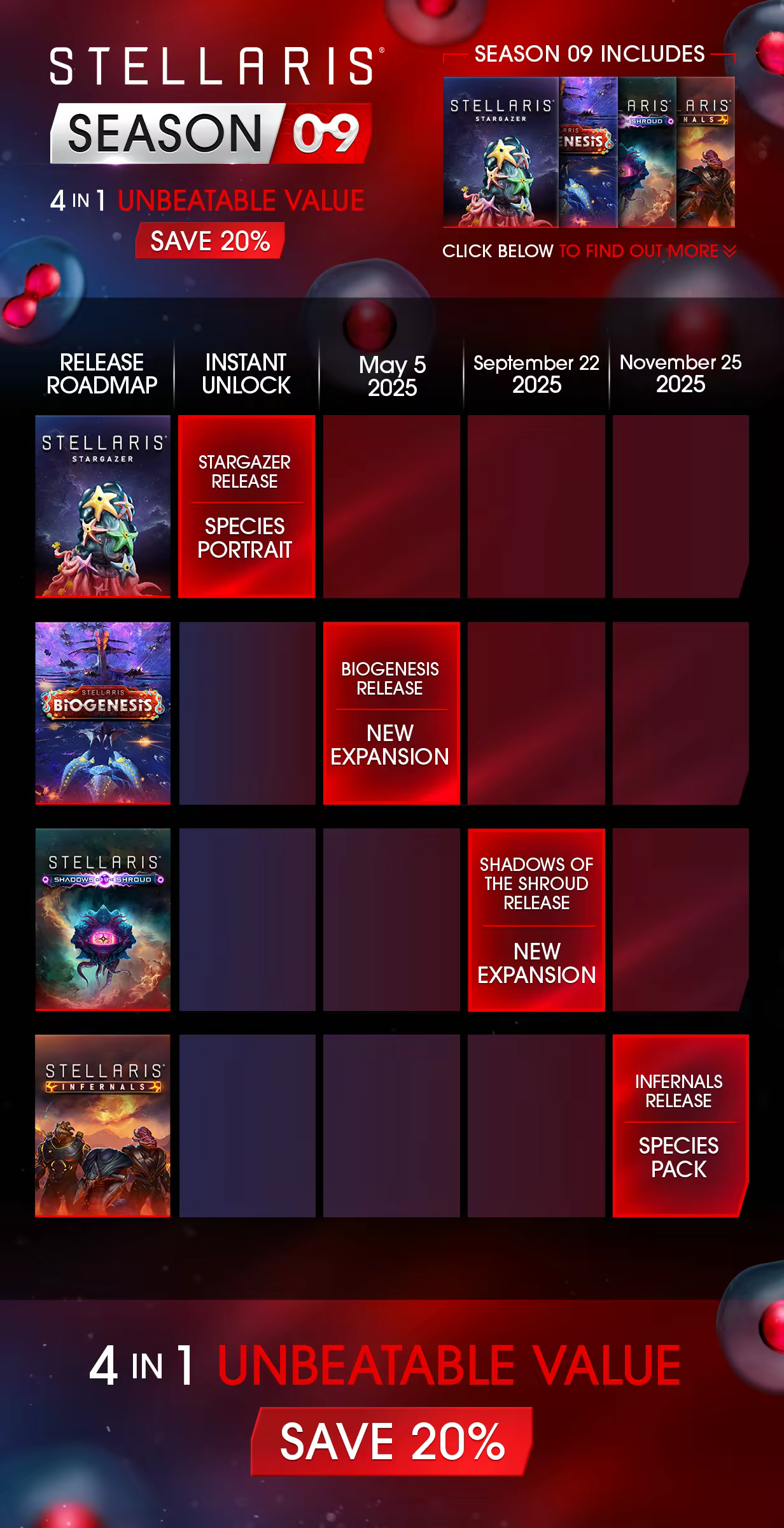 5 ürün içerir: Stellaris, Stellaris: Stargazer Species Portrait, Stellaris: BioGenesis, Stellaris: Shadows of the Shroud, Stellaris: Infernals Species Pack