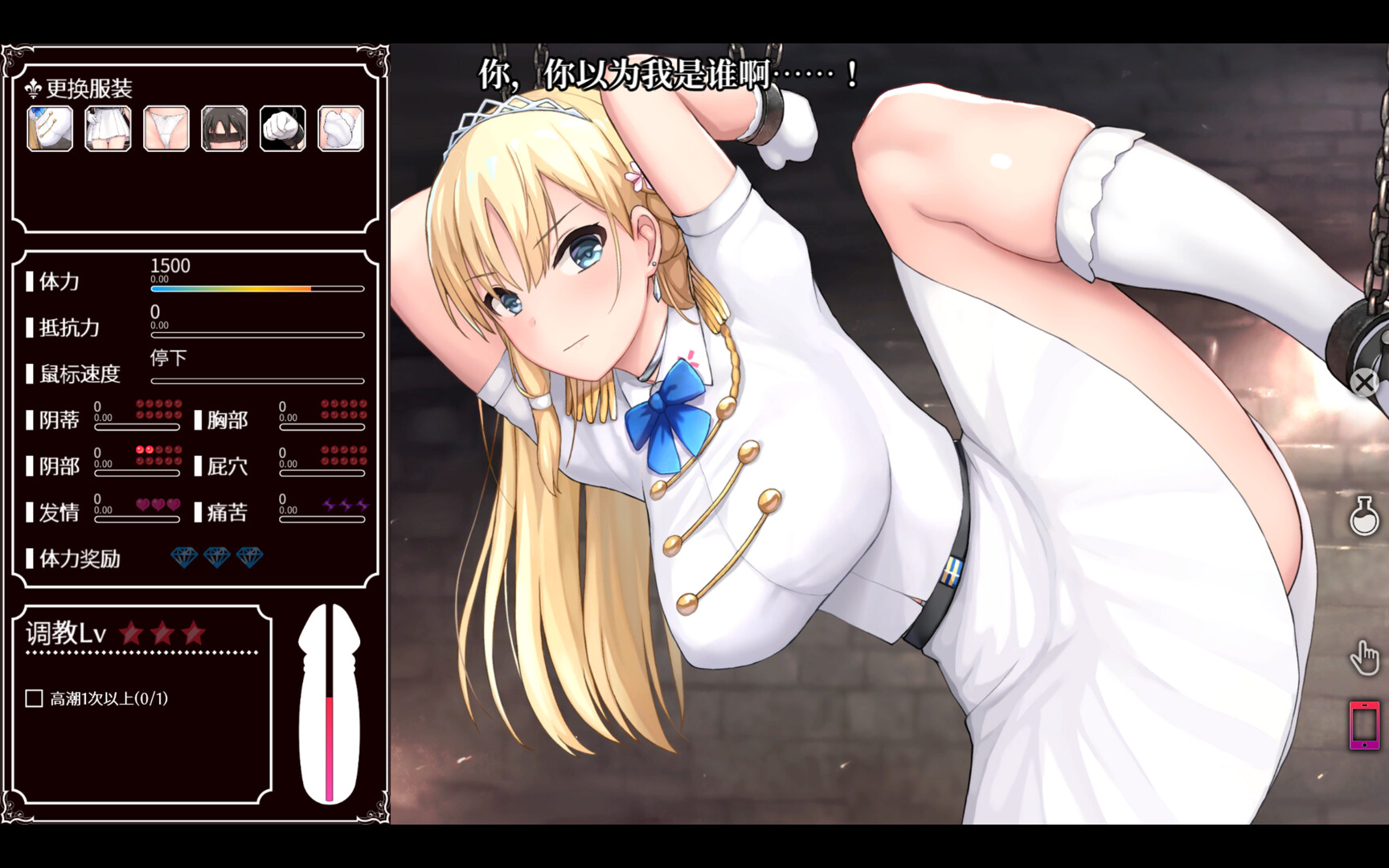在触摸模拟小游戏中掌控、调教公主和她的亲信们!发掘出她们身体最脆弱的部分,以此给予她们奖励和痛苦。