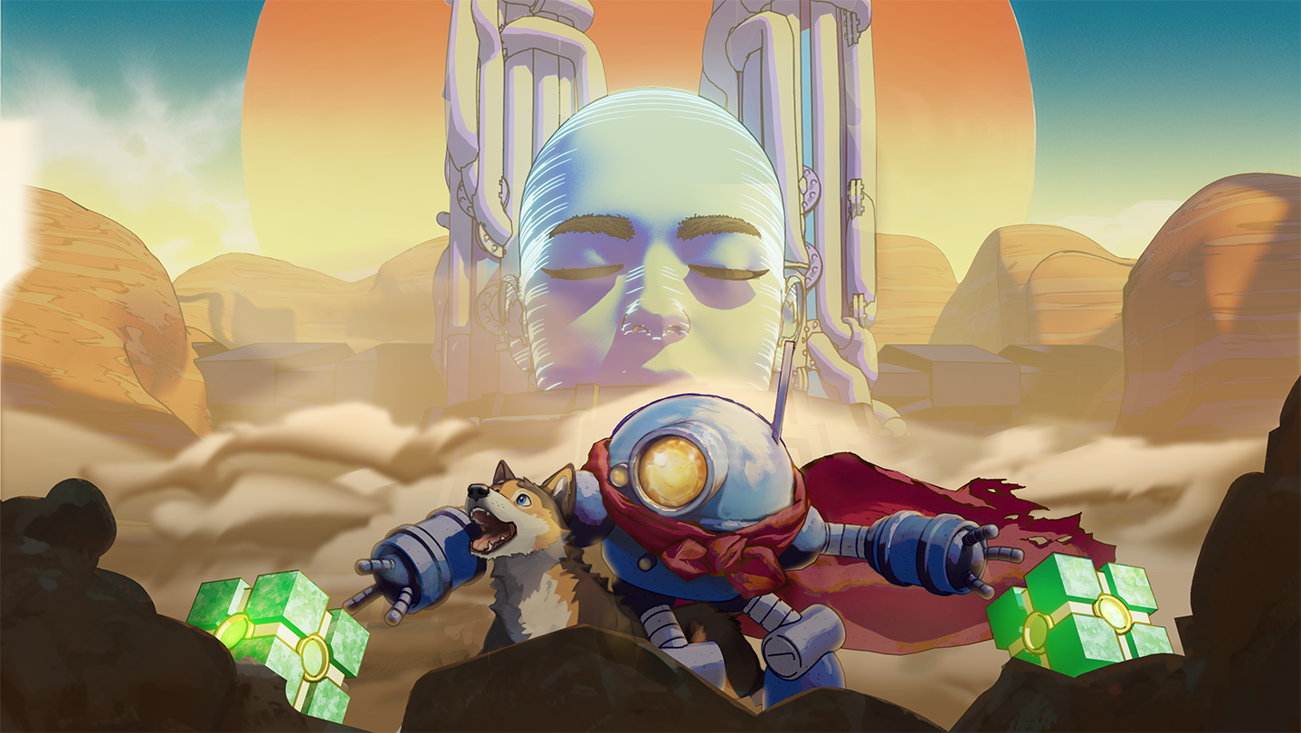 Explore a cozy open world and uncover the secrets of Cydonia Village. Collect Energy Cores with the help of a loyal companion to restore water to the desert, and meet villagers along the way.