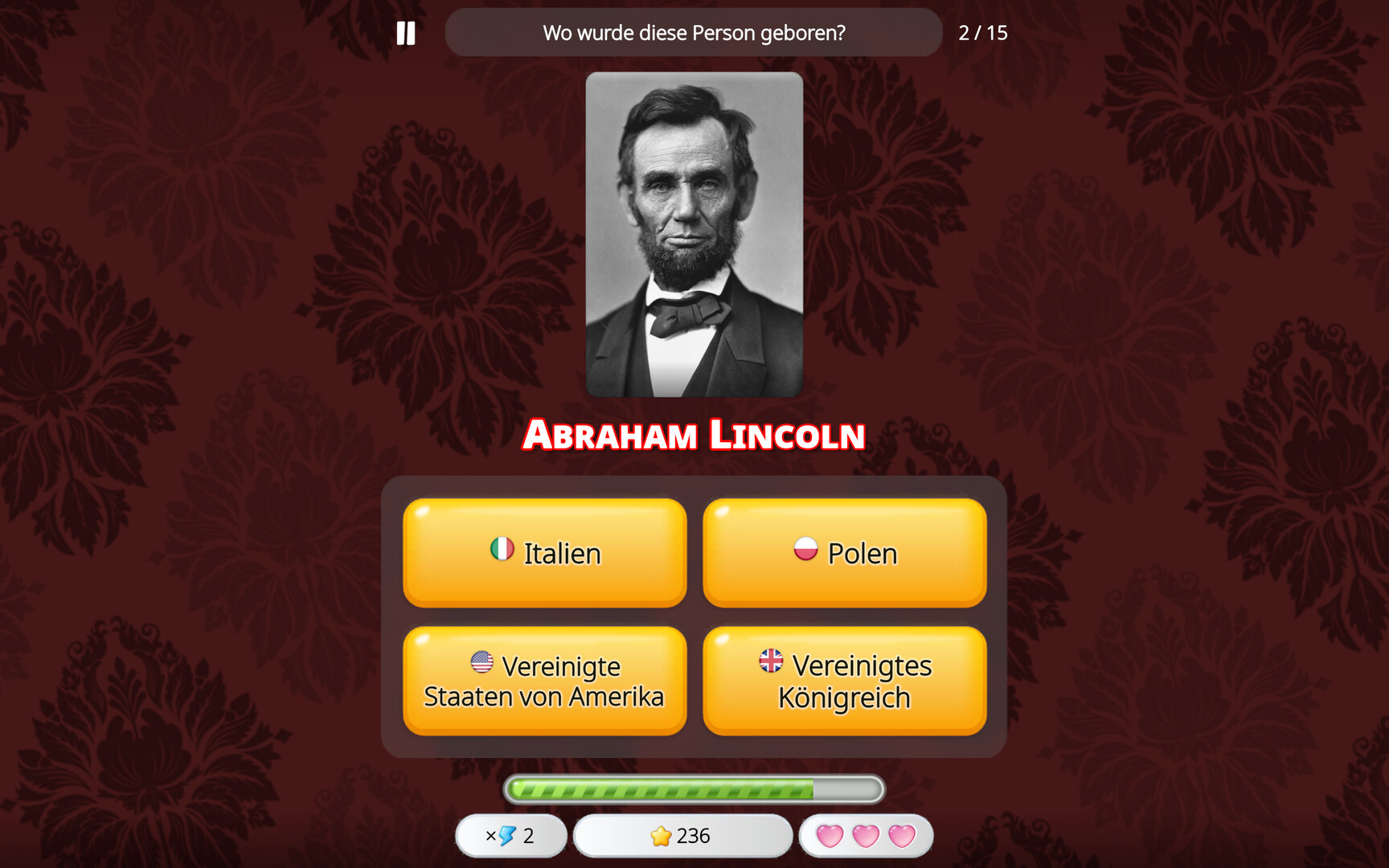 Dieses DLC-Paket fügt einen brandneuen Spielmodus hinzu! In diesem Spielmodus wird dem Spieler der Name und ein Foto einer berühmten historischen Figur gezeigt, und er muss wählen, in welchem Land sie geboren wurde. Wie gut kennen Sie Ihre Geschichte?