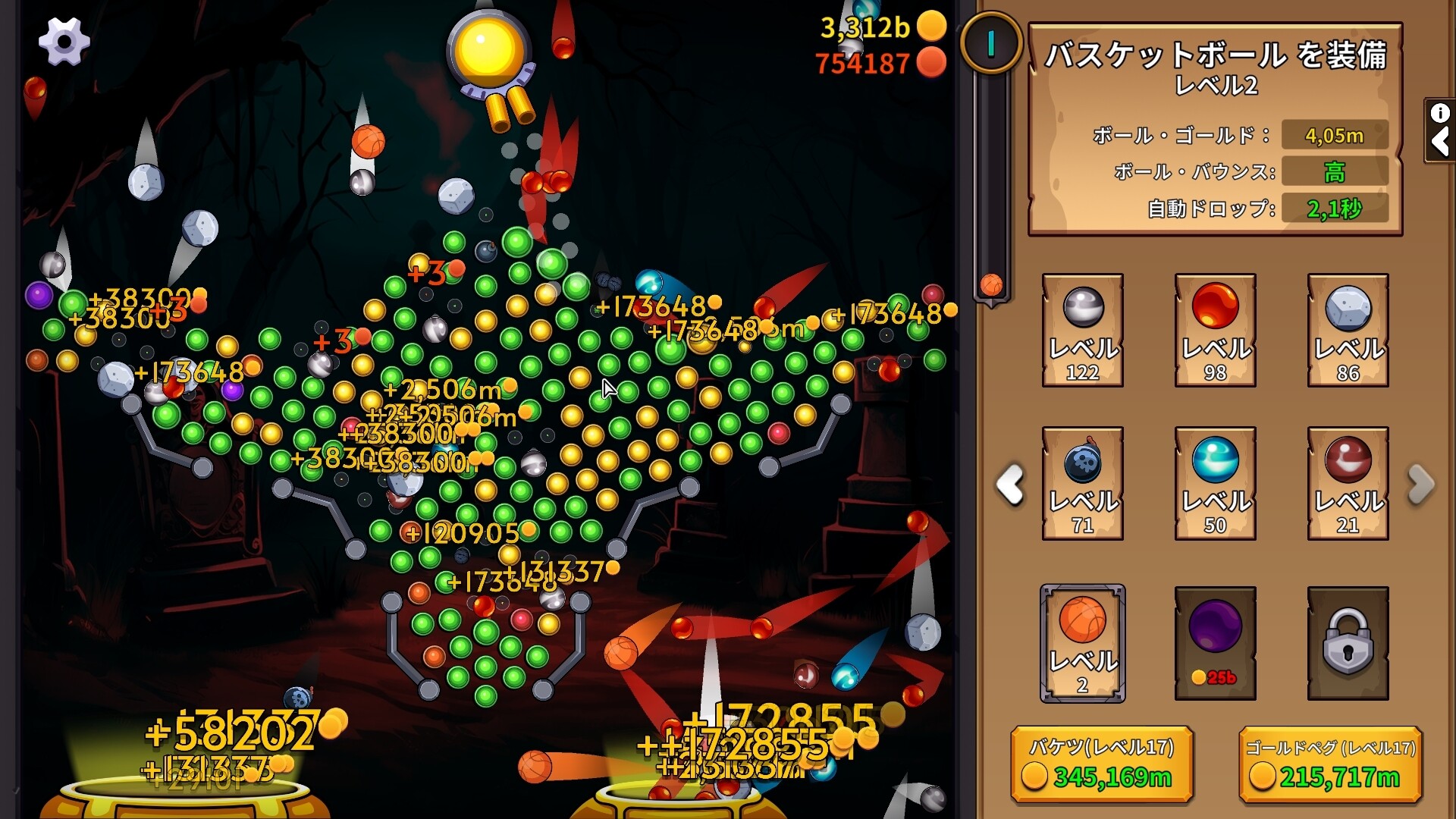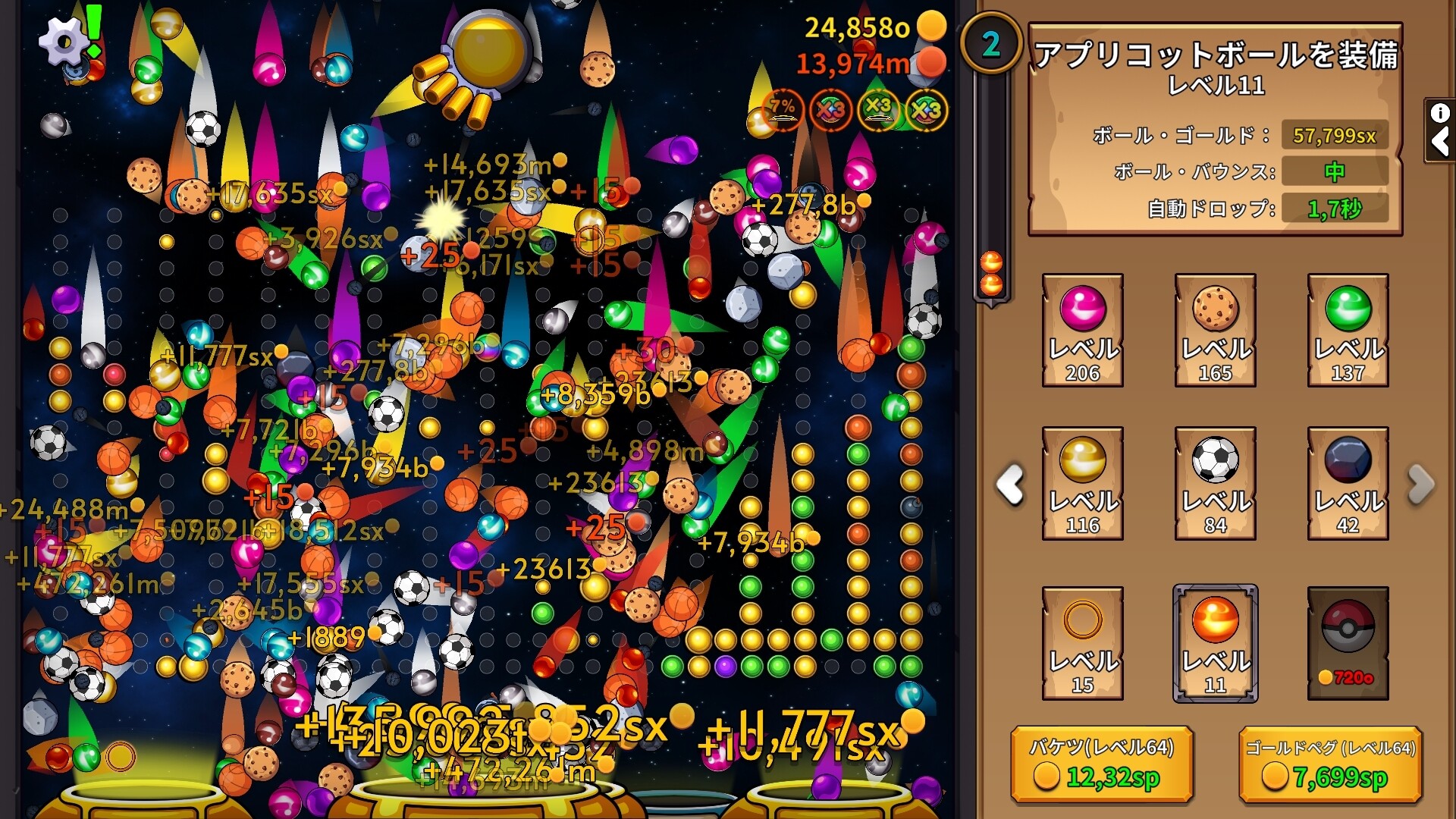 PegIdleのゴールは、ボード上のペグを消すこと。ボードがクリアされるたびに、新しいボードが出現します。新しいボードが出現するたびに、各ペグにはゴールデンペグ、プレステージペグ、その他のユニークペグになるチャンスがあります。ゴールデンペグを打つとゴールドが手に入り、新しいボールやボールのアップグレードに使うことができます。ゴールドは、動くバケツにボールを落としても獲得できます。バケツもゴールデンペグもアップグレードできます!