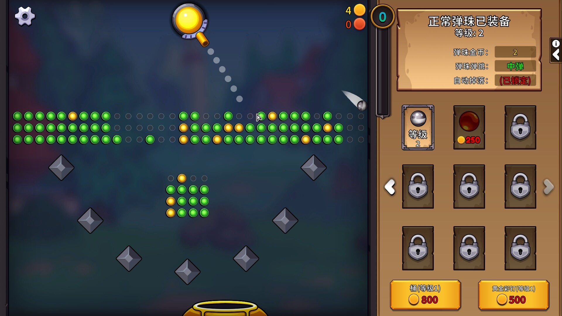 瞄准并射出你的弹珠来清除游戏盘上的彩钉!