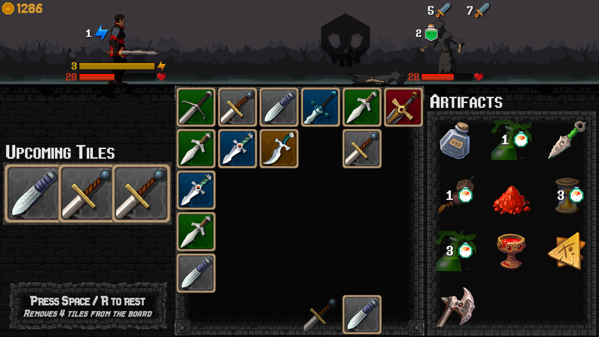 Merge weapons, shields and potions while moving through a strategic roguelike board battler. Collect 50+ unique artifacts, create game-breaking synergies and outsmart deadly bosses.