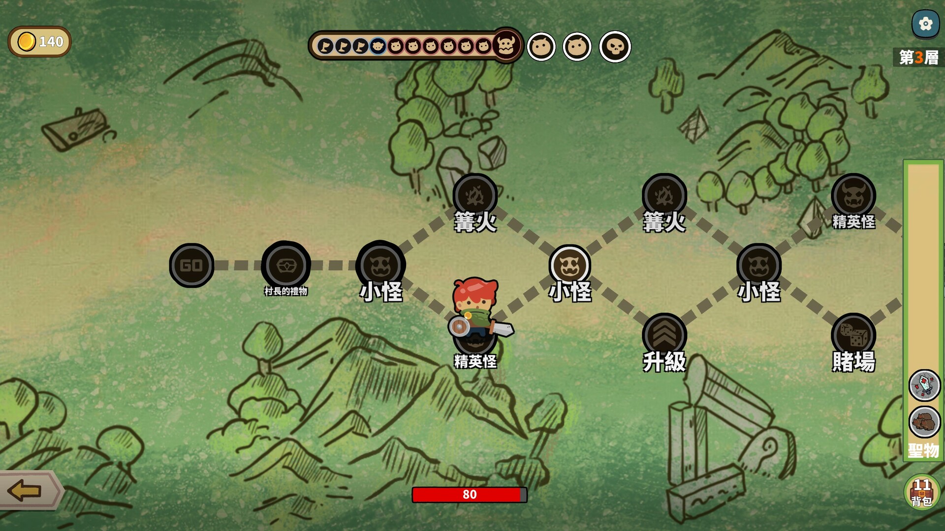• 在隨機生成的狩獵地圖上不斷前進,慎重地選擇路線,探索戰鬥、商店、附魔、事件等不同節點;
