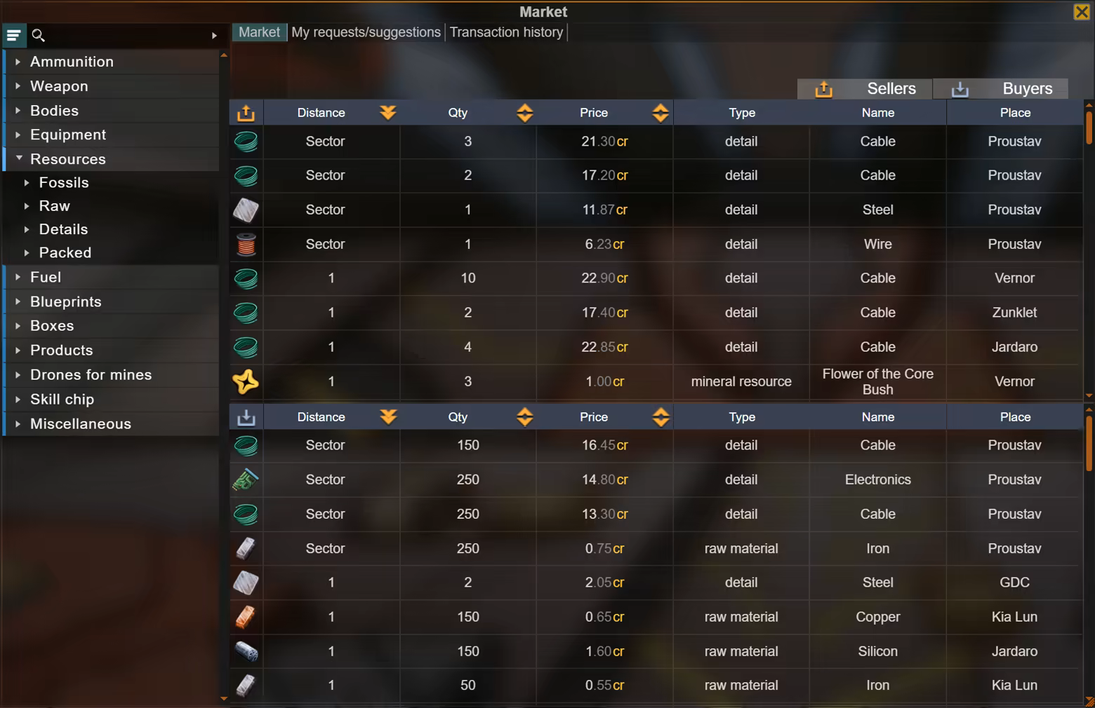 Any item that can be placed in a "cargo" hold can be sold on the market. Any item can be dropped on the ground or placed in a container, including game currency.