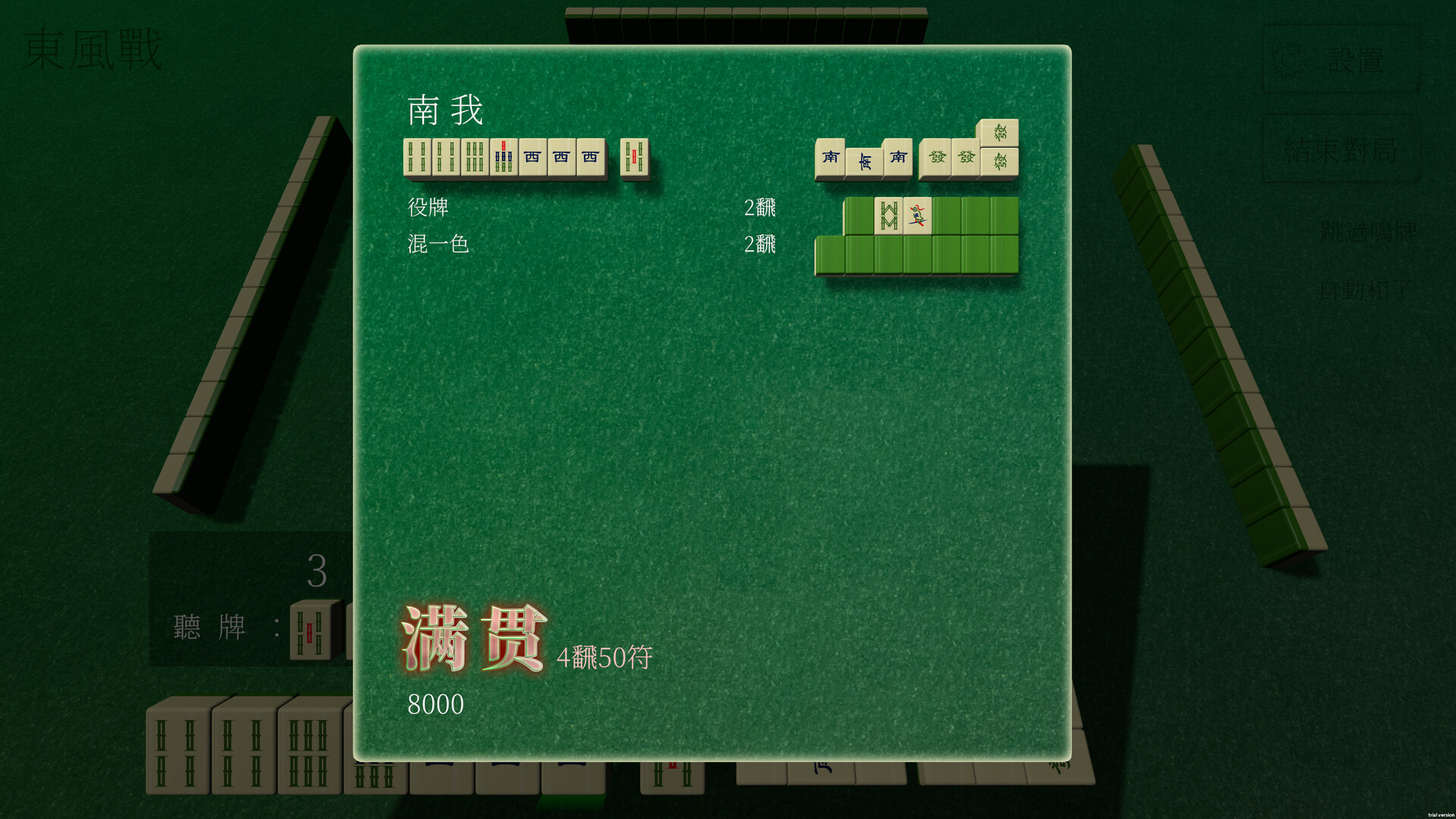 一款單人模式的日本立直麻將遊戲。在與真人玩家對戰感到汗流浃背時,來一場輕鬆愉快的對局如何?