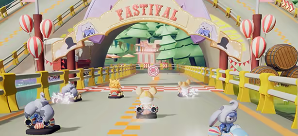 Fastival is an arcade racing game where players speed through different attractions within a vibrant and cartoony carnival throughout each race. Knock down targets as you race to trigger unique effects on the track that you can use to your advantage. Collect wacky items that can be used to mess with other racers to enhance your driving capabilities.