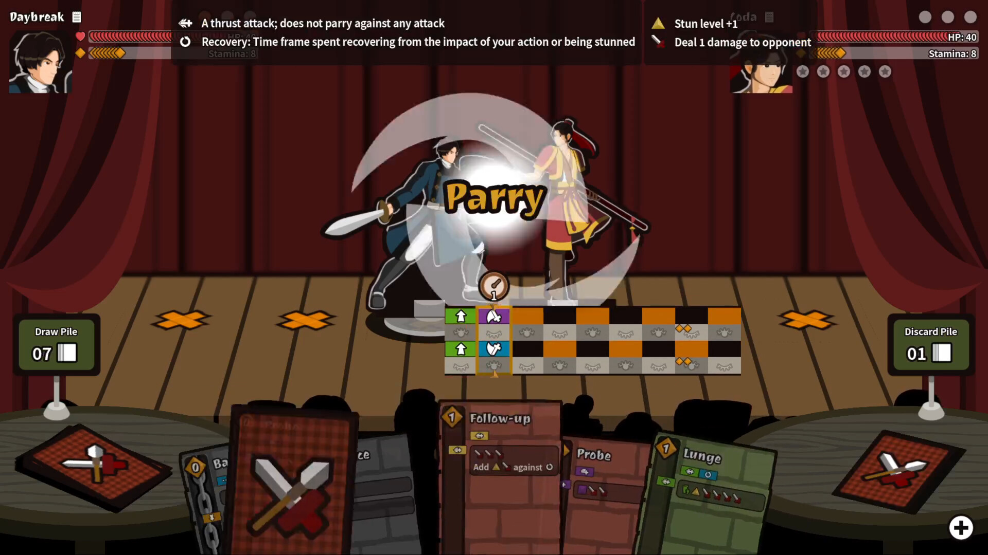 Outsmart your opponent in this turn-based card battler! Master the unique turn system based on time frames - calculate your risks, and exploit your opponent's hasty decisions. Explore a range of playable fighters with distinctive play styles, each of whom has their own unique move set and mechanics.