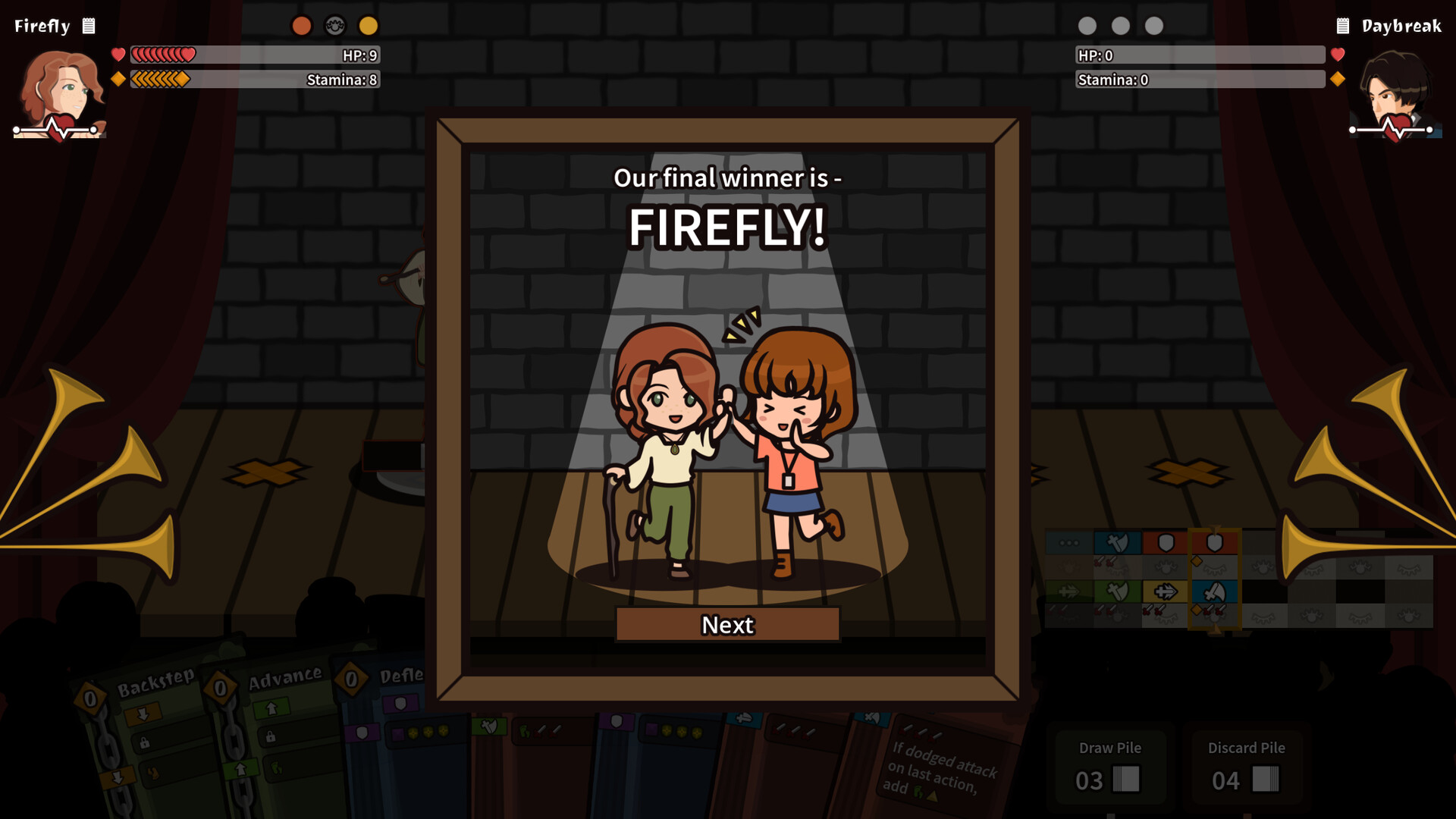 Outsmart your opponent in this turn-based card battler! Master the unique turn system based on time frames - calculate your risks, and exploit your opponent's hasty decisions. Explore a range of playable fighters with distinctive play styles, each of whom has their own unique move set and mechanics.