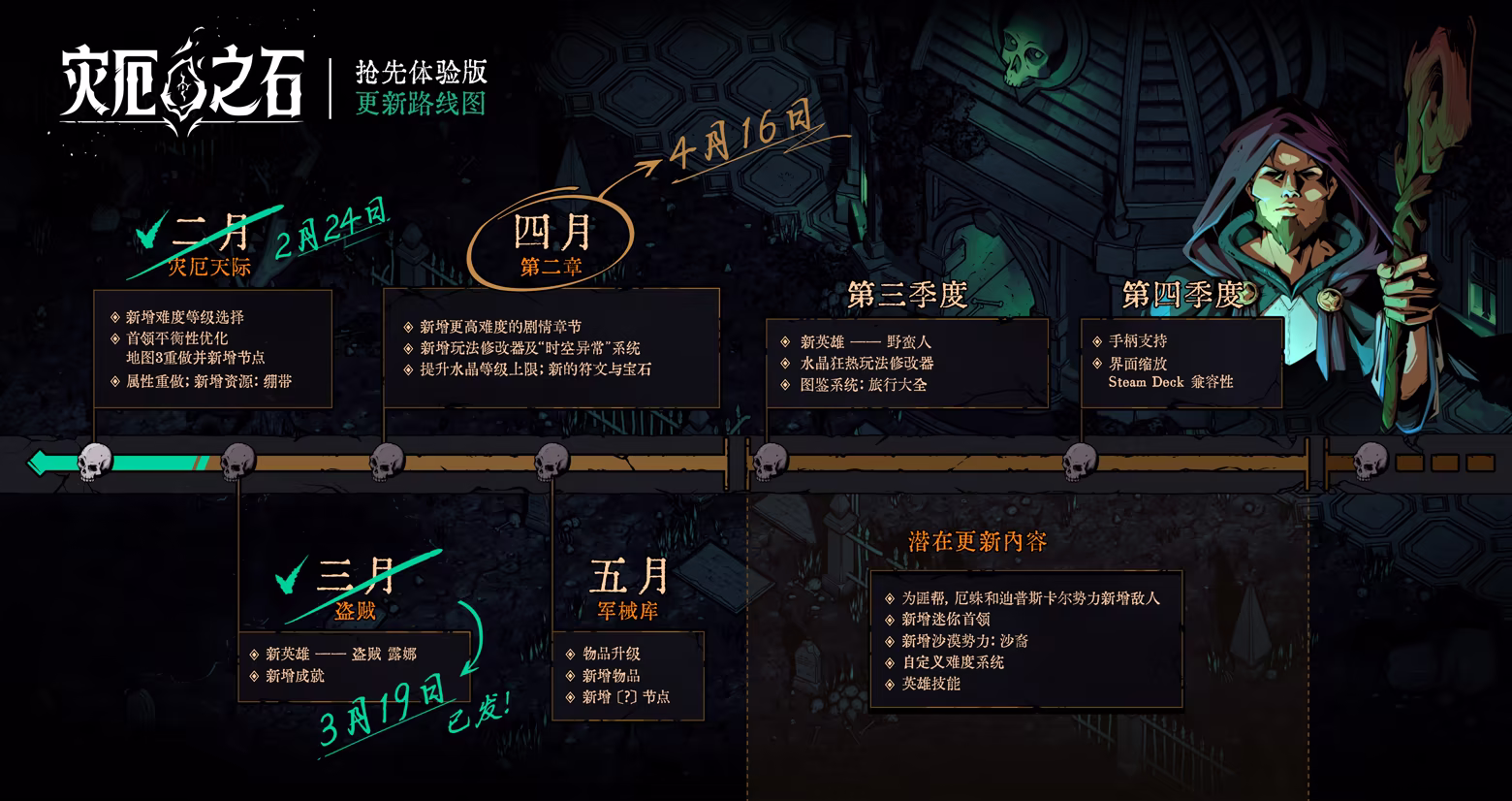 “我们的初步计划是让《灾厄之石》的抢先体验阶段持续 6–12 个月。不过,这一周期将高度取决于玩家反馈。我们计划在此期间持续加入大量新内容与新功能,包括新的英雄、敌人、地图节点、技能与道具等。”