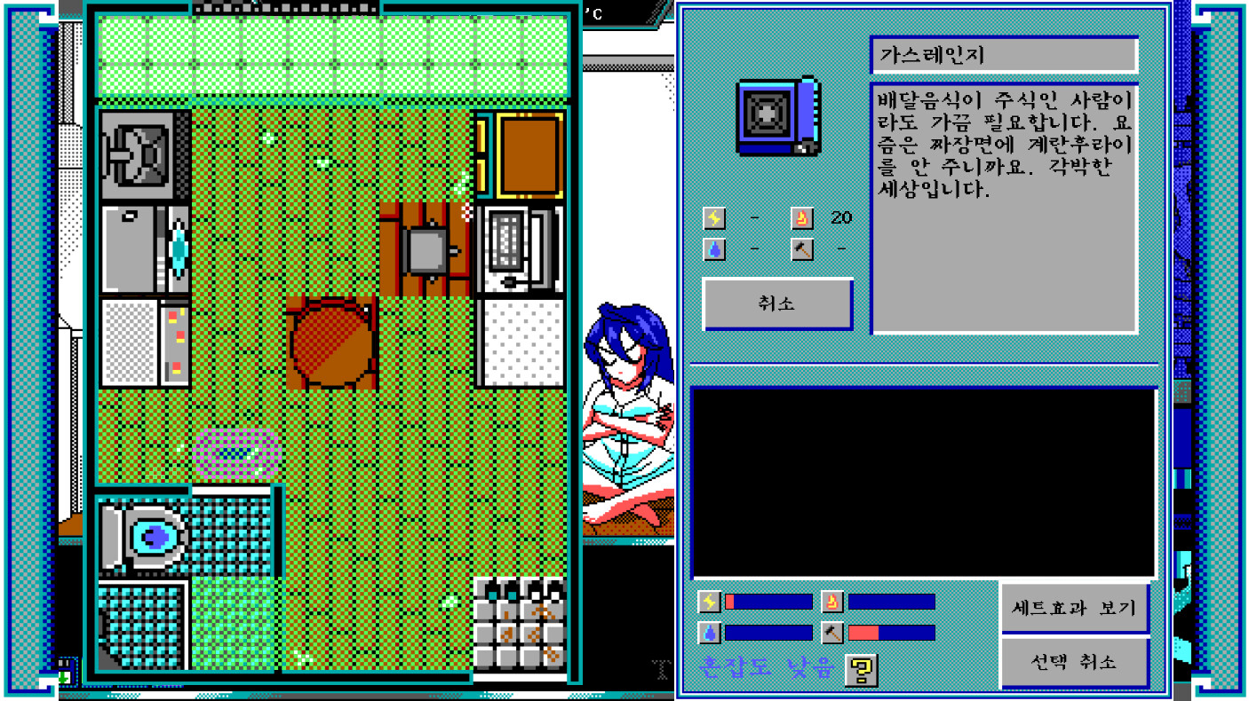 • 그녀의 호감을 얻고, 그녀의 능력치를 올리고, 아이템이나 가구와의 상호작용을 통해 그녀가 기억을 되찾을 수 있게 도와주세요. 각 분기들은 개성적인 스토리를 가지고 있으며, 때로는 특수한 경험을 할 수도 있습니다.