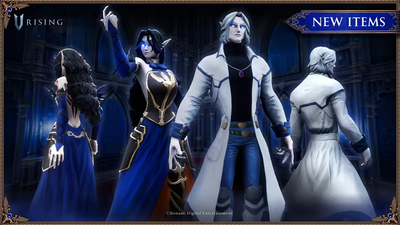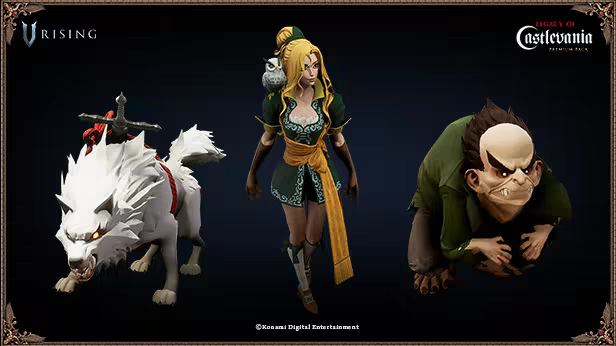 Introducing the Legacy of Castlevania Premium Pack in collaboration with Konami Digital Entertainment (KONAMI). This pack includes new cosmetics that allow you to take on the storied aesthetics of hair, clothing, and forms from one of the all-time classic Vampire franchises. Invoke style and indulge in your Castlevania nostalgia alongside the action-packed V Rising experience you’ve come to know and love.