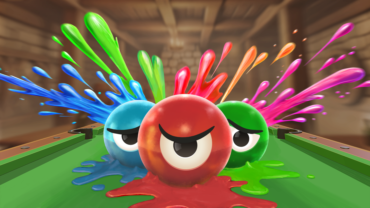 A mysterious infestation has taken over the pool tables! Unidentified, ball-shaped and seemingly annoyed creatures are multiplying uncontrollably when touched, leaving colorful splash marks on our precious tables. No one knows where these invaders come from, or what is their goal, but one thing is certain: the only way to stop them is by playing the pool masterfully