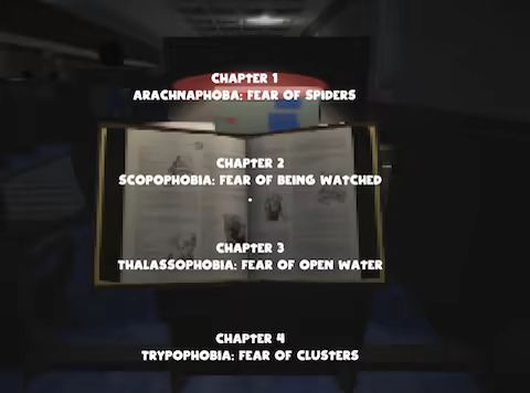 Once you select a chapter from the book, you're thrust into immersive and spine-chilling scenarios, each representing a different phobia. You must navigate treacherous environments and face your deepest fears.