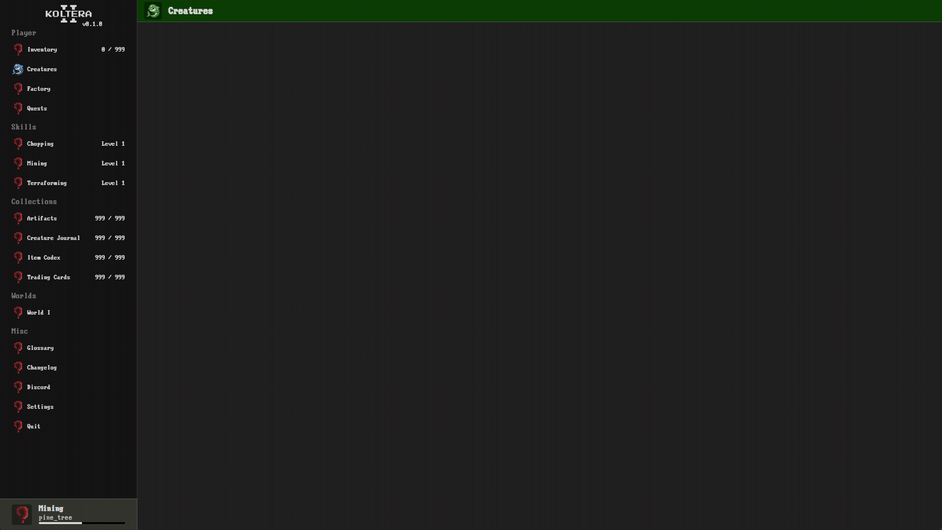 Koltera 2 is a relaxed incremental idler about gathering resources, refining them, and summoning creatures to your side to aid you on expeditions and gathering items. Rediscover and restore the lost creatures that once roamed Koltera, years after the group who harnessed them for powerful weapons, was defeated.