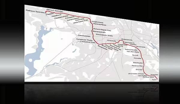 With a coverage of 31.8 km (19,8 miles) and 40 stations the U7 is not only the longest of all Berlin subway lines but also the line with the most stations and the longest journey time. Built from 1924 to 1984 this large profile line runs completely underground, through a total of 5 districts of the German capital and even goes underneath the rivers Spree and Havel as well as the Teltow and the Westhafen canal.