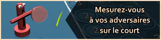 Jouez sur le gazon, la terre battue et les surfaces dures et adaptez votre stratégie en fonction de la vitesse et de la hauteur de la balle qui rebondit sur la surface du terrain. Touchez les bulles bonus dans le court pour obtenir des avantages instantanés. Donnez-vous à fond pour gagner des points de robot et améliorer votre score de match. Chaque point marqué, chaque ace et chaque faute affecte votre score ainsi que la quantité de points gagnés au terme de la partie.