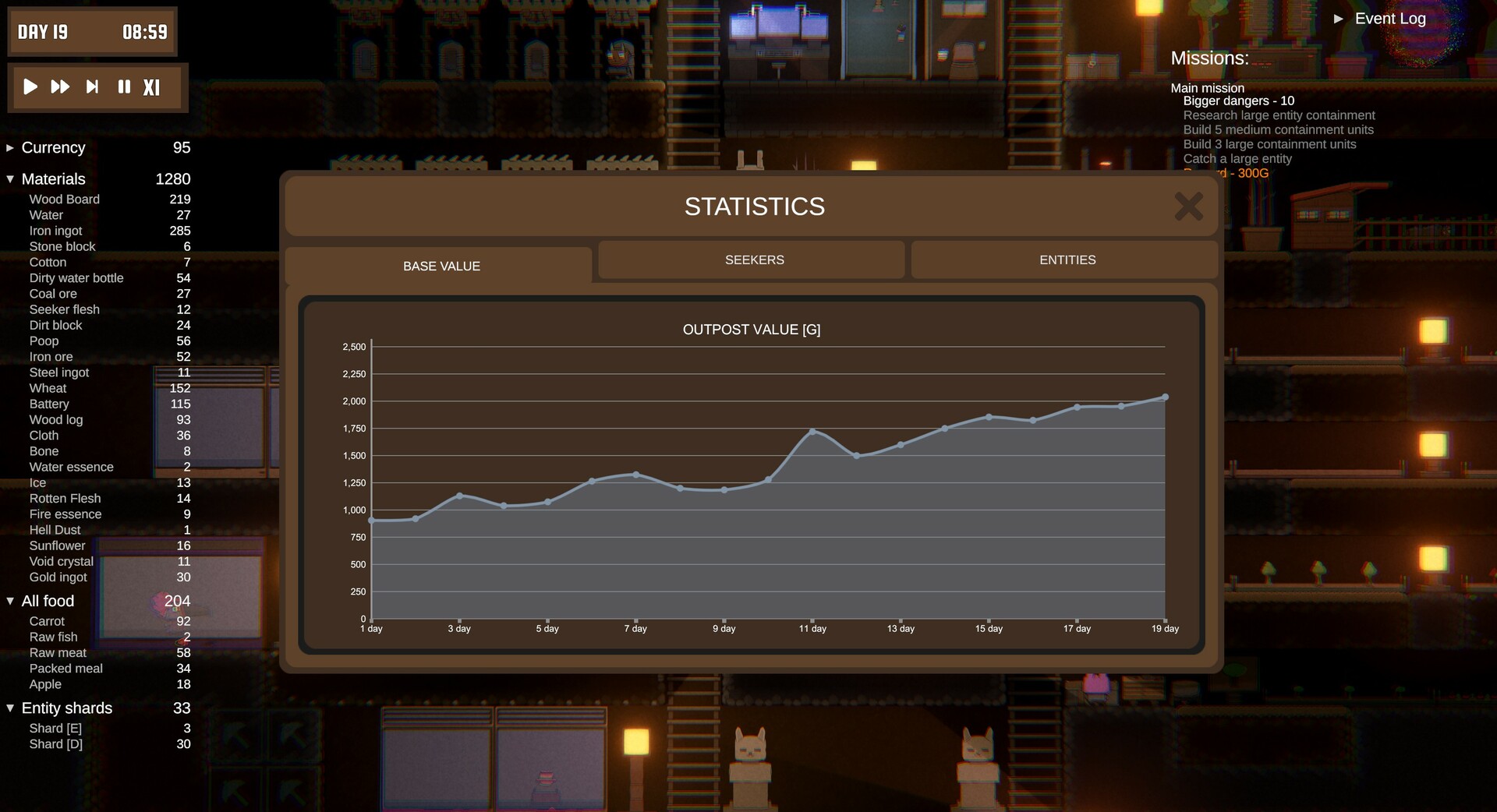 Mission: Rift seeker is a colony simulation game about building and managing your base on an unknown planet and exploring the surrounding void rifts that are full of horrific and mysterious entities that you are tasked to capture before they to eat the brave and fluffy seekers that you command.