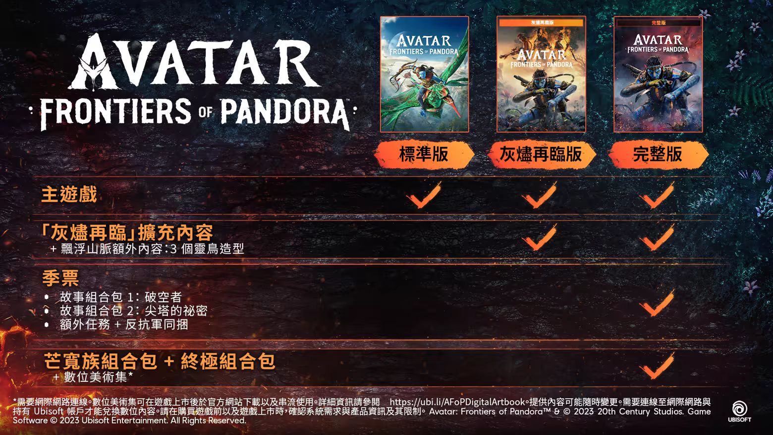 內含主遊戲、季票、獨家造型、額外內容、數位美術集,以及靈感來自《阿凡達:火與燼》的「灰燼再臨」擴充內容。