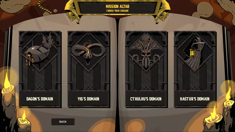 But the greatest threat lies in shadow, beyond the farthest stars. Unknown powers, alien to our world, had already seeped across the lands and formed their own cults. The invasion of the Outer Gods put their petty conflicts to a sudden stop, and all barrels turned towards their common enemies. Thus, erected the Church of Humanity, the one true faith above all, the one of oil, steel and gunpowder. The battle of influence between earth and stars begins here. May the Bullet lead us to yellow light.