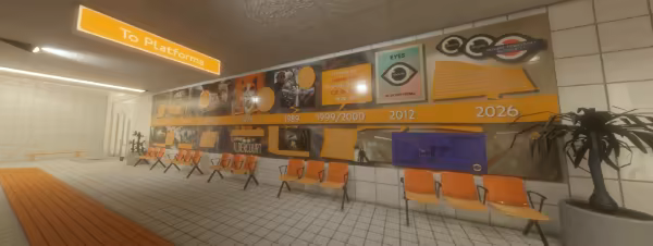 Aldercourt Station is a sprawling and expansive addition to London's Travel Network. Come get lost amonst its tile halls and take in the scenery as you pass through its liminal spaces.