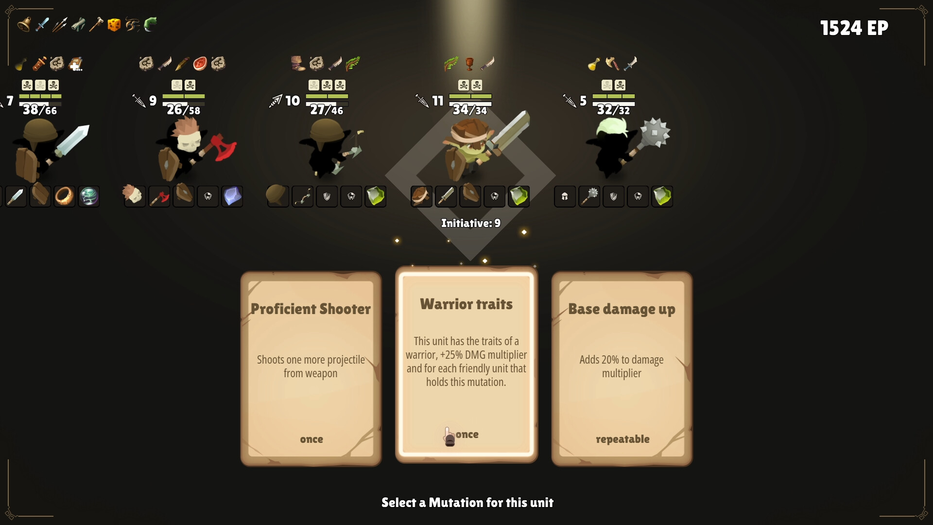 The gear you equip and the mutations your goblins gain sometimes contain skill cards that they can manifest. You will be able to use these skill cards to help them achieve victory by playing them on friendly or enemy units.