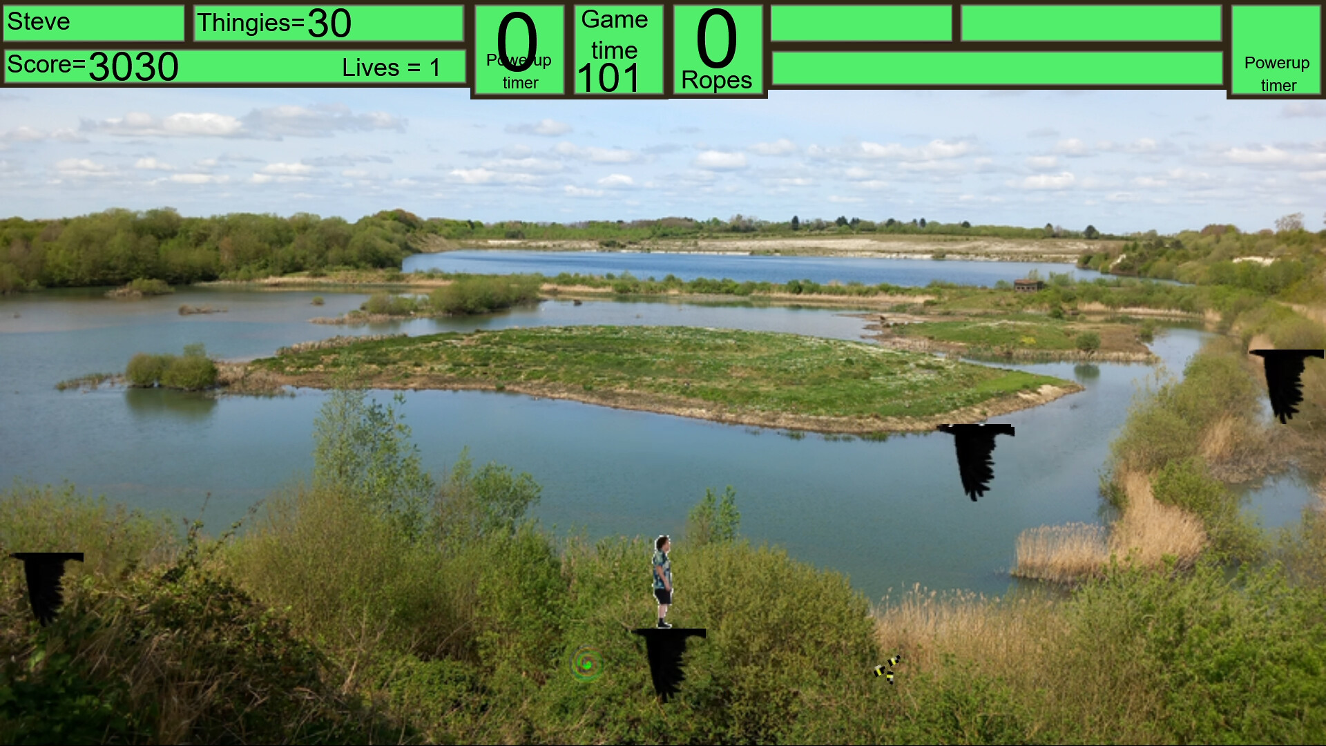 Control Steve and jump to stay on the crows, collect the thingys and stay alive for as long as you can to increase your score.