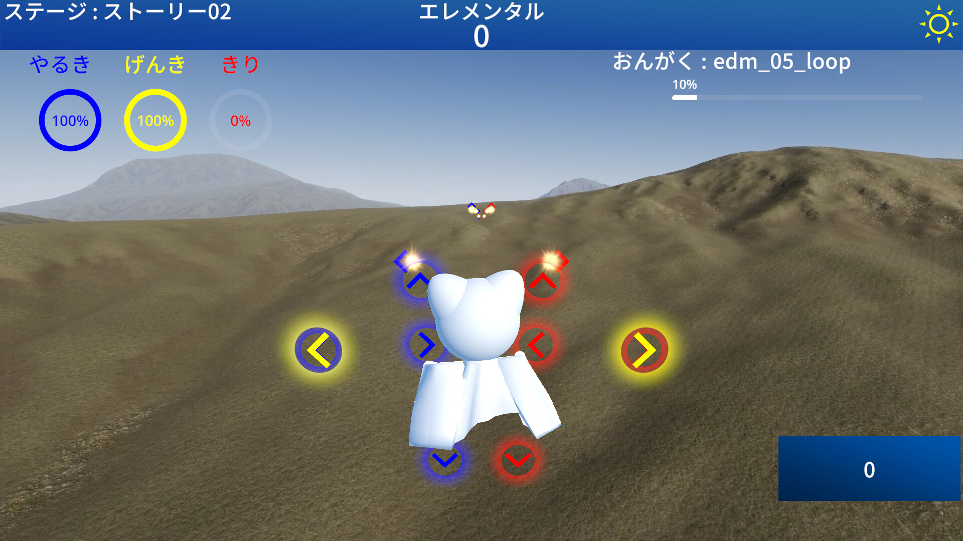 『てるにゃん と あまのいわと』は、てるにゃんがまっすぐ進みながらエレメンタルを集めていくリズムゲームです。