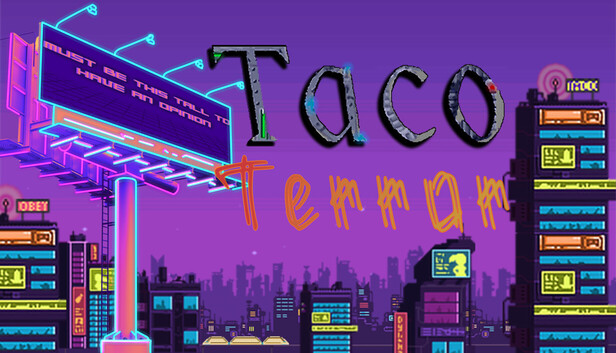 TACO TERROR is a boomer shooter set in a cyberpunk future where capitalism rules everyone - except for you. Run, gun, choke, dive, jump, love(?), and slide your way through the forces of T.A.C.O. Take back New TACO City from these forces of fried evil before you become too... delicious.