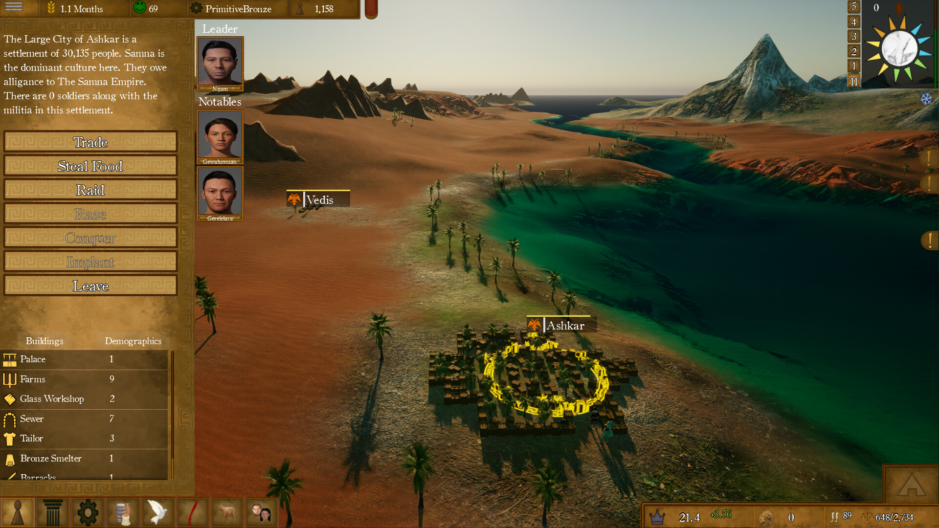 Ascendant Dawn is a grand strategy game where you lead a nomadic tribe in a brutal bronze age world. Work your way up from a small clan to a great empire by founding cities and conquering your enemies.