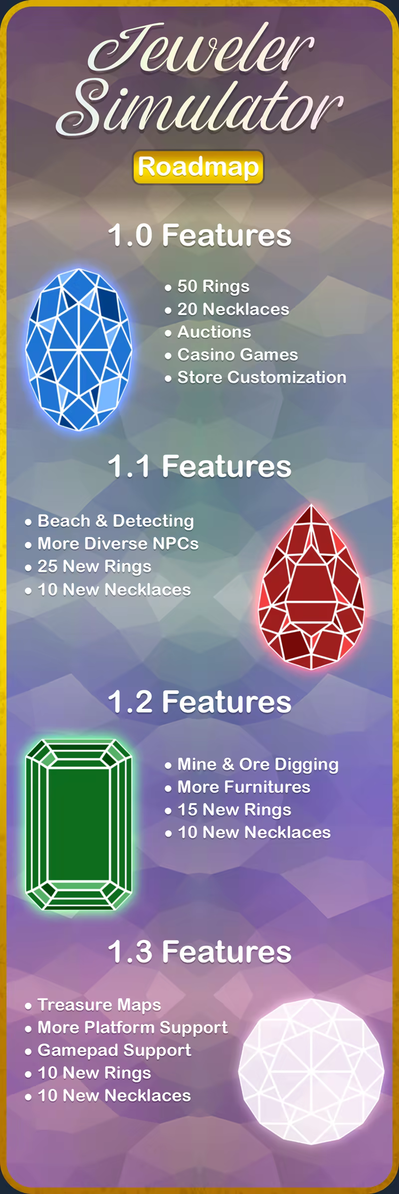 Jeweler Simulator: Become the King of Precious Stones! Equip your store with the most dazzling diamonds and put them up for sale to acquire even better ones. Rise in the leaderboard with the prestige you'll gain and become one of the world's top jewelers.