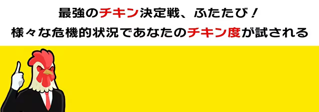 最強のチキン決定戦、ふたたび! 様々な危機的状況であなたのチキン度が試される