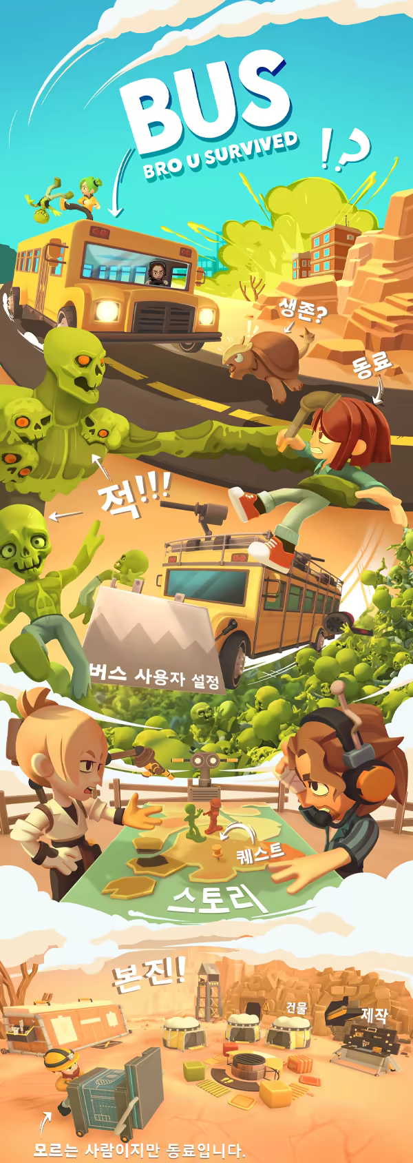친구들과 함께 대재앙을 헤쳐 나가세요! BUS:Bro U Survived는 1~4인용 게임입니다. 자원을 채굴하고, 임무를 수행하고, 기지를 개발하고 버스를 업그레이드 해서 송곳니 섬을 떠날 방법을 찾아 보세요!