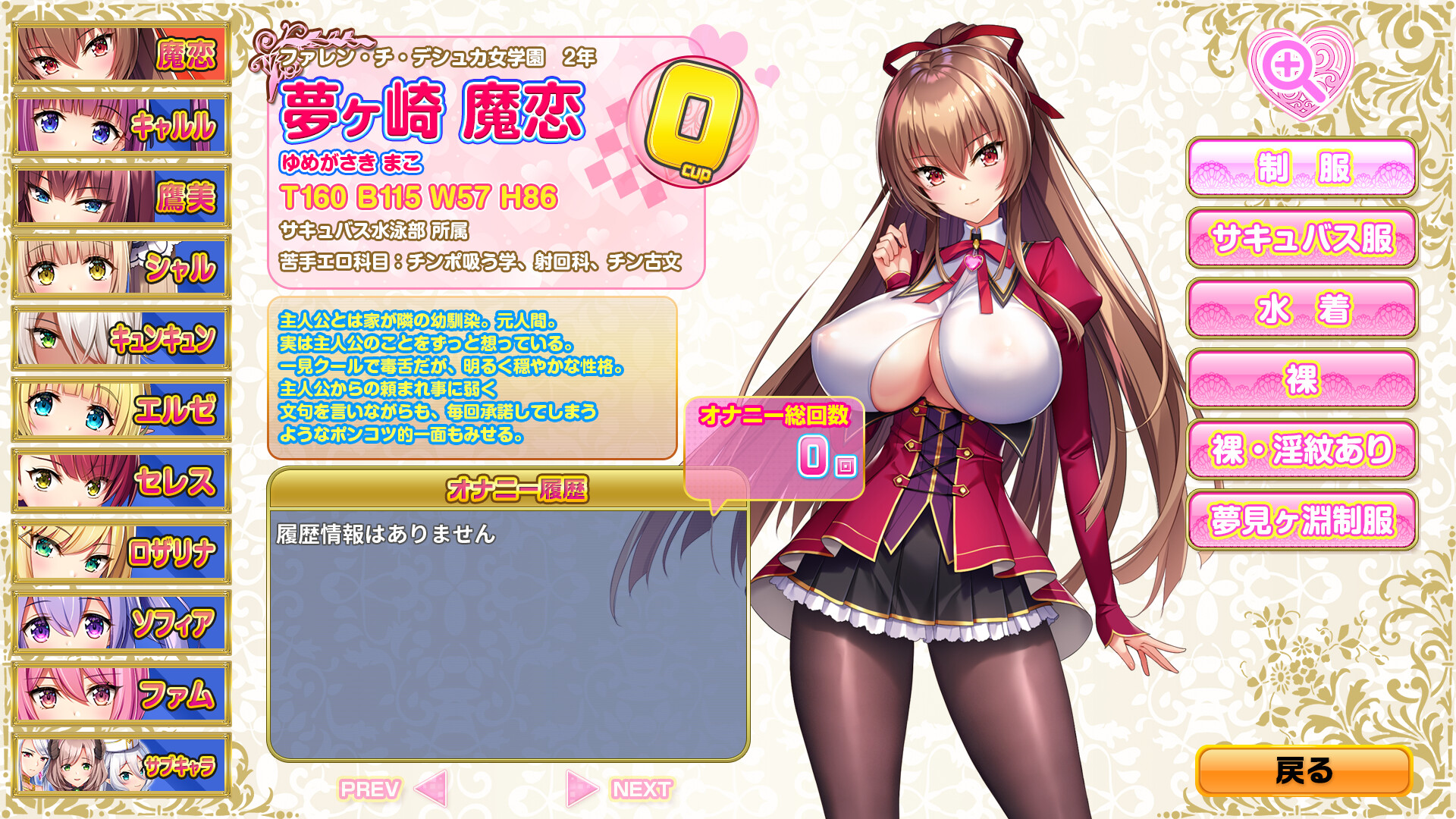 またメインキャラのプロフィール画面に表示されている「オナニー履歴」「オナニーボイス」「オナニー回数」も変化していきます。