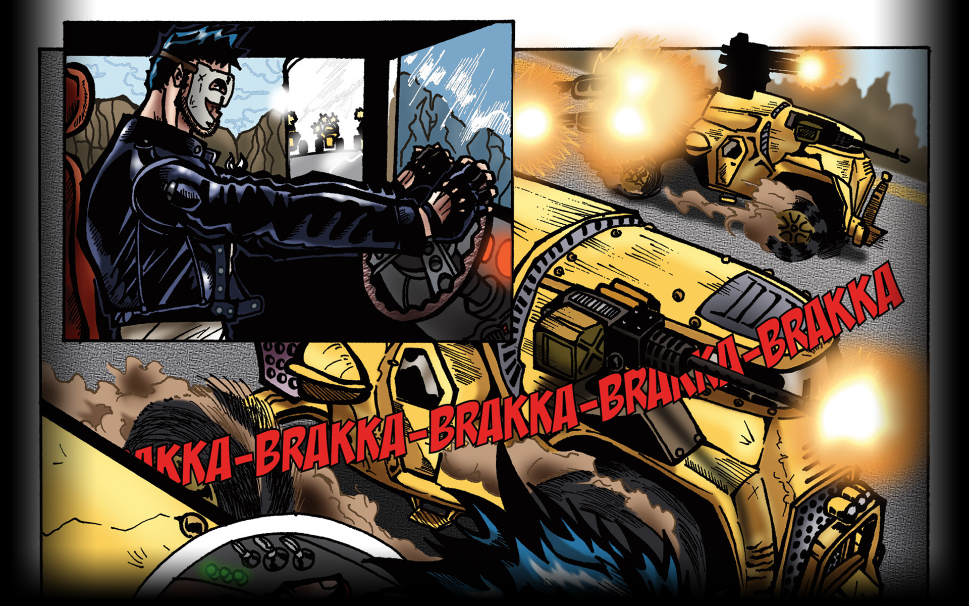 In a post-apocalyptic wasteland of diesel and dust, bandits and mobsters rule the last remaining cities, controlling all vital trade routes and destroying any hope of a return to a lawful world. It's up to you, as the driver of a heavy transportation truck, to blast through the mayhem and deliver needed supplies to desperate towns. Your life depends on being the ultimate offensive driver, while making sure to keep your truck in top operating and fighting condition. It's kill or be killed in the world of Hard Truck Apocalypse.