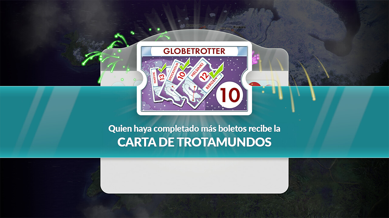 Persigue el Bono Globetrotter, otorgado al jugador con más billetes completados. Estrategia con 40 piezas de tren en lugar de 45 para hacer más desafiante la conexión de las ciudades nórdicas, y enfrenta la ruta Murmansk-Lieksa, una nueva ruta de nueve trenes de largo. Además, puedes intercambiar tres cartas de vagón de ferrocarril de color por una carta de locomotora.