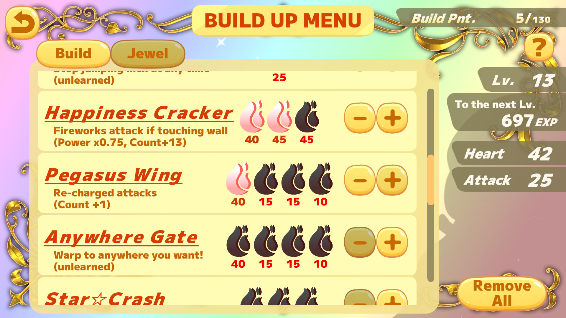Freely acquire skills by allocating "Build Pnt." obtained by leveling up.